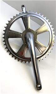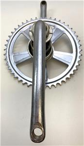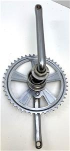 Crank, sprocket and bottom bracket from a 1973 Stingray coaster brake bike. Correct for coaster brake and 3 speed Stingrays. 7" long crank arms. Beautiful original chrome. Same crank and bottom bracket for 5 speed models.