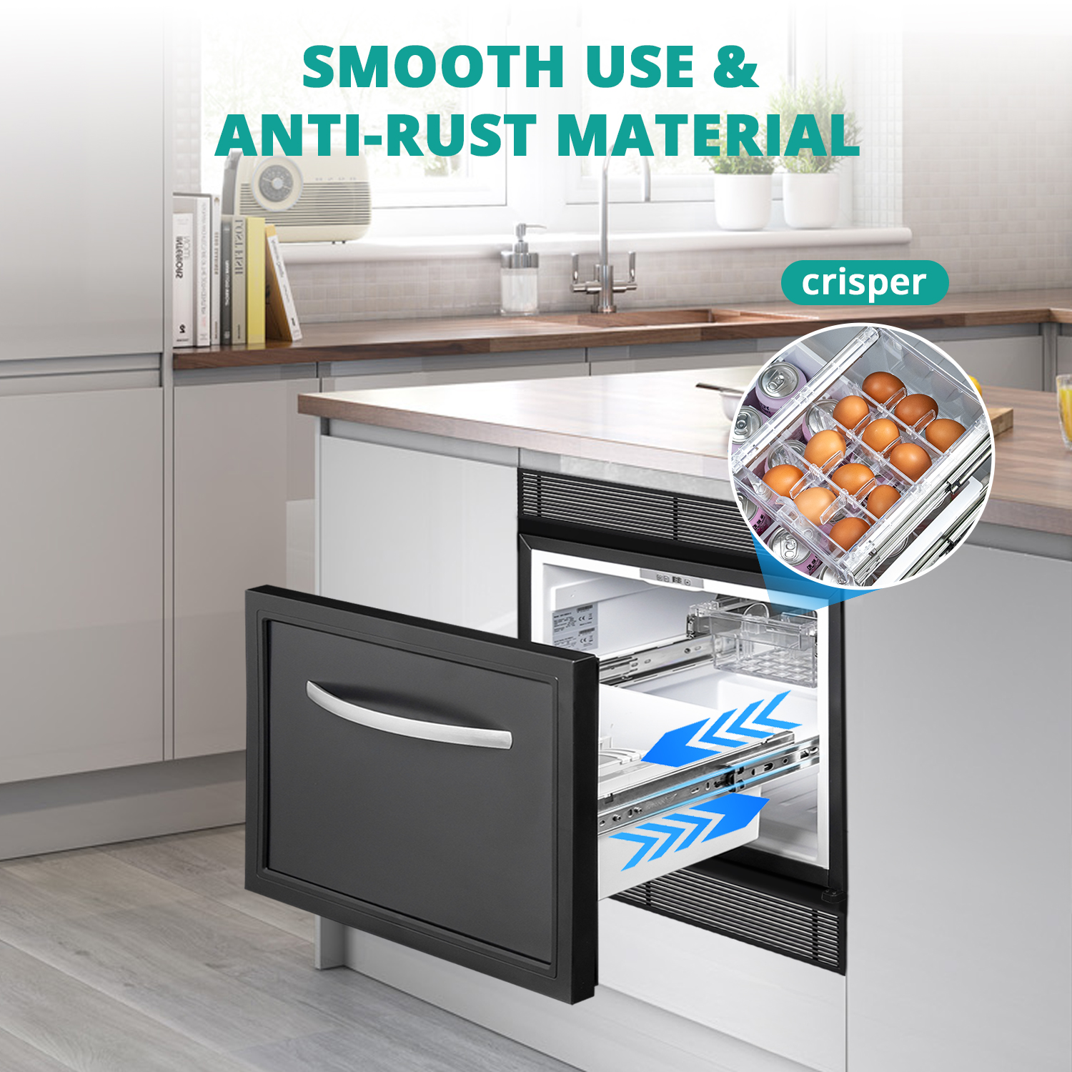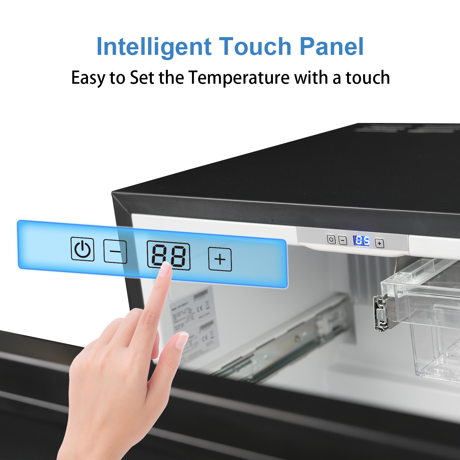Efficient Cooling 12V Fridge Drawer- This refrigerator drawers features advanced cooling technology with 3 temperature levels, allowing you to adapt to different food storage needs. Keep items fresh with precise control within a 37.4-55.4 ℉ range.