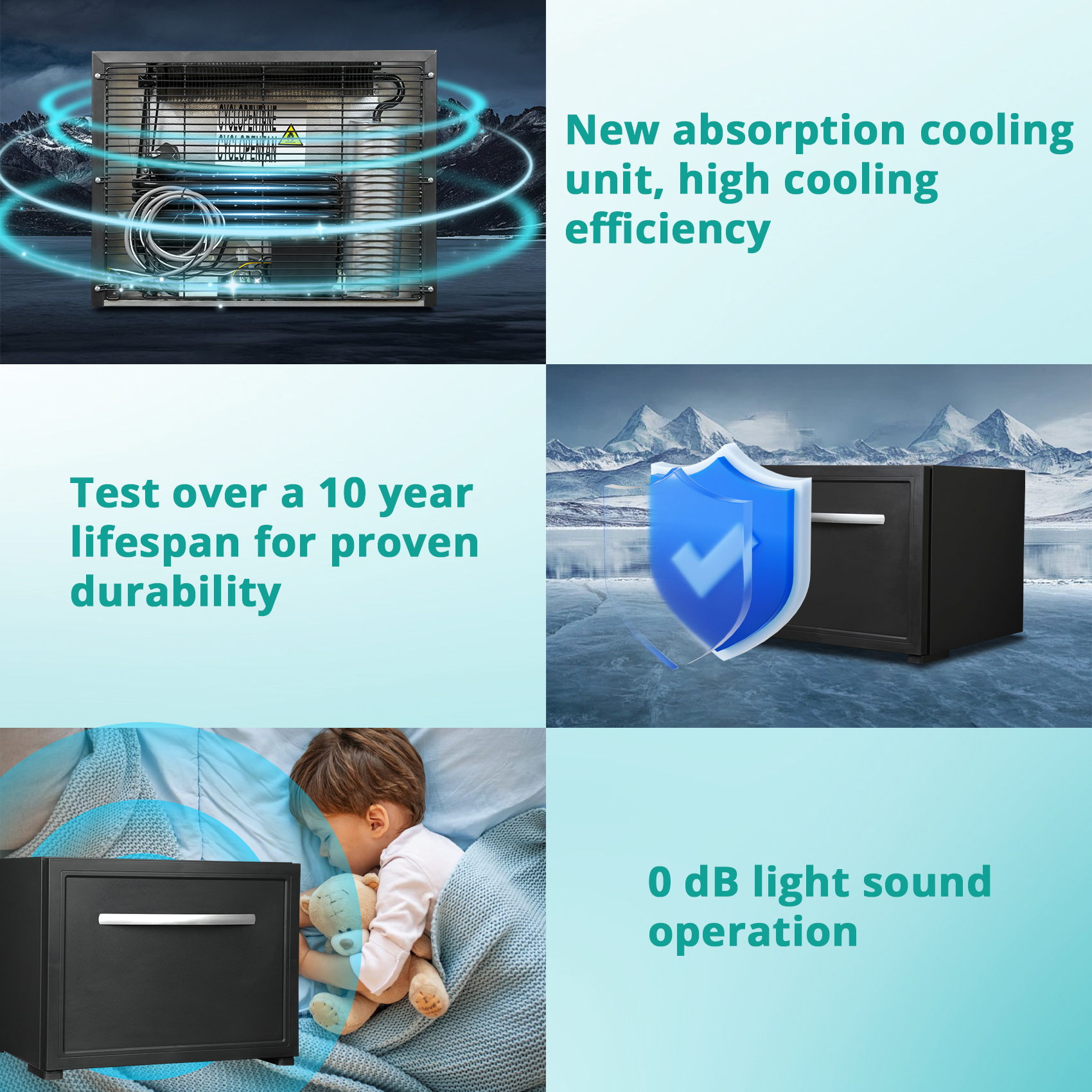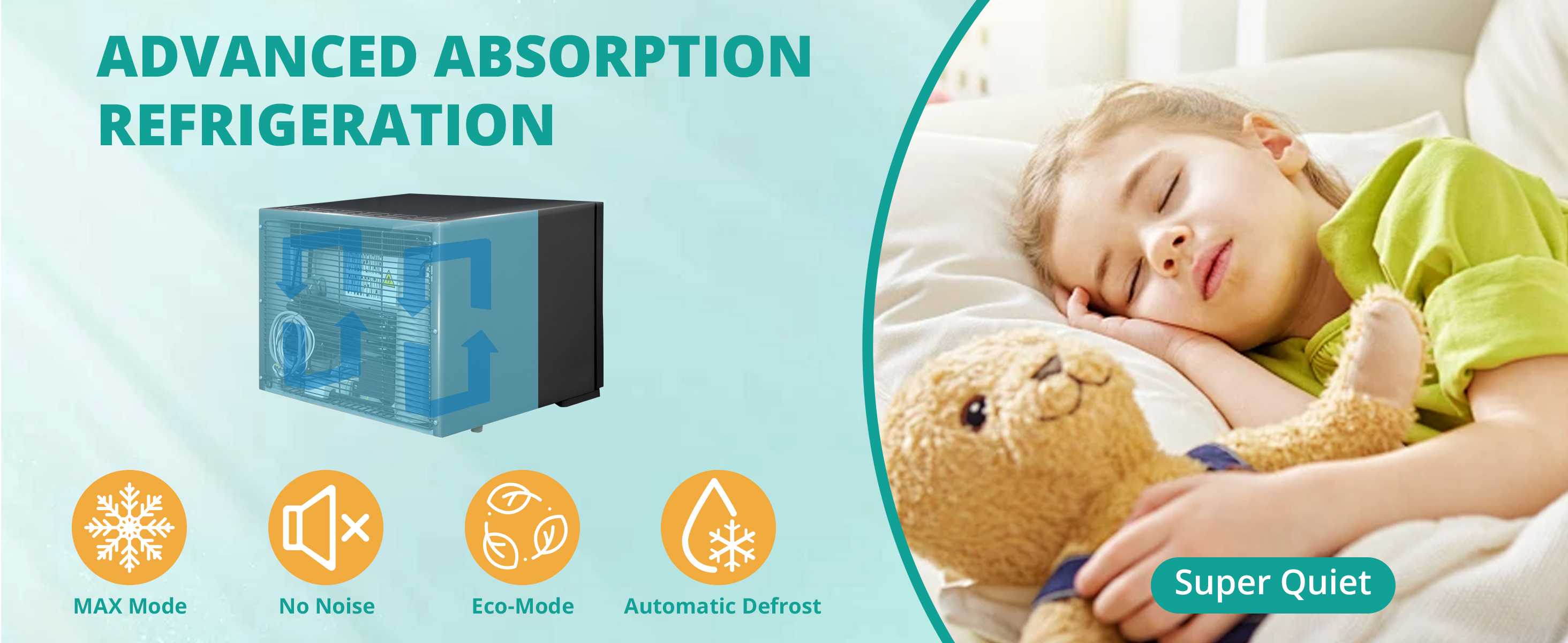 No Freon, no pollution, low energy consumption, environmentally friendly, no noise for bedrooms.