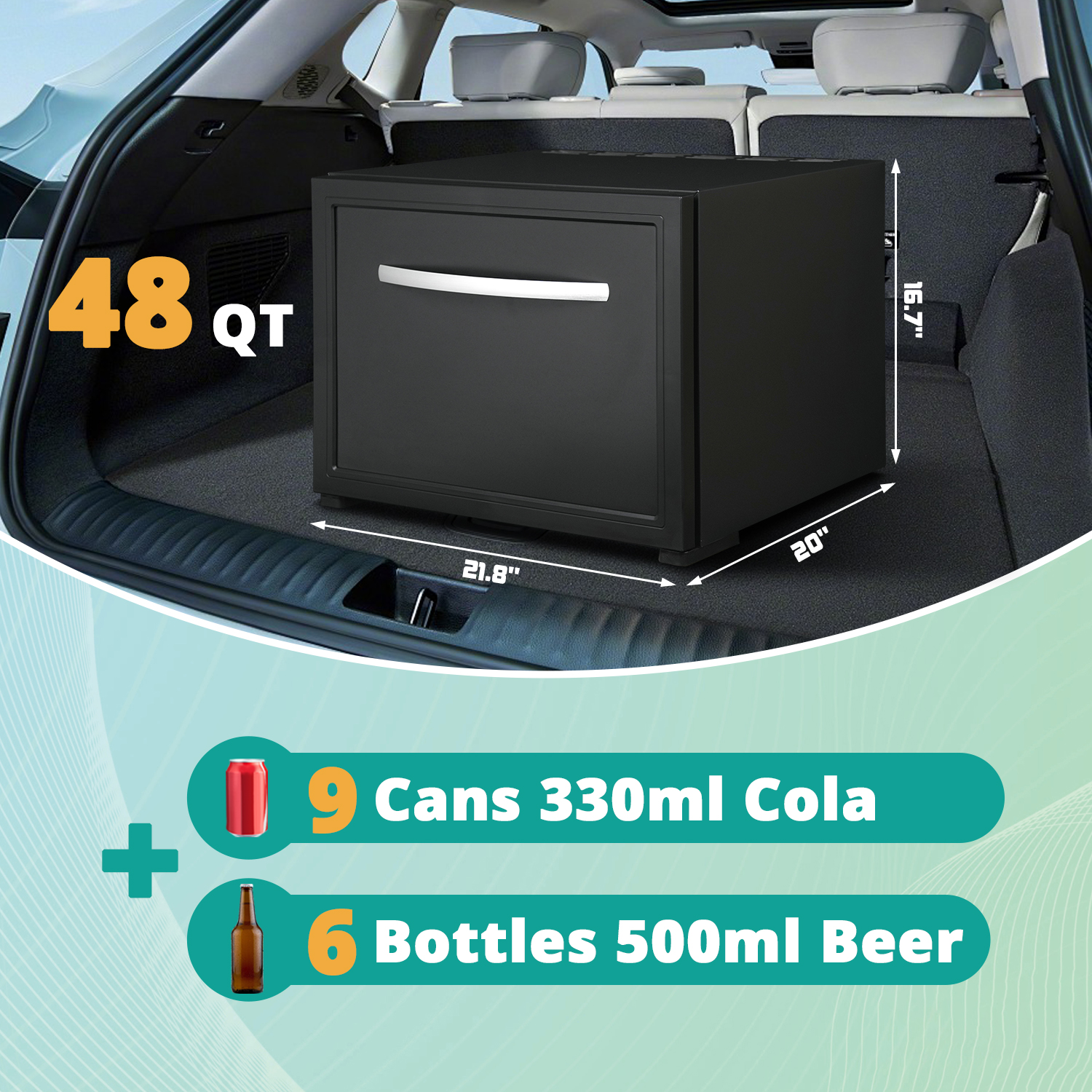 2-way power supply: DC 12V for cigarette lighter, AC 110-120V for wall outlets; 12V/110V, large 12-volt refrigerator minibar for home/RV, Size: 21.65in(W)*20in(D)*16.54in(H)