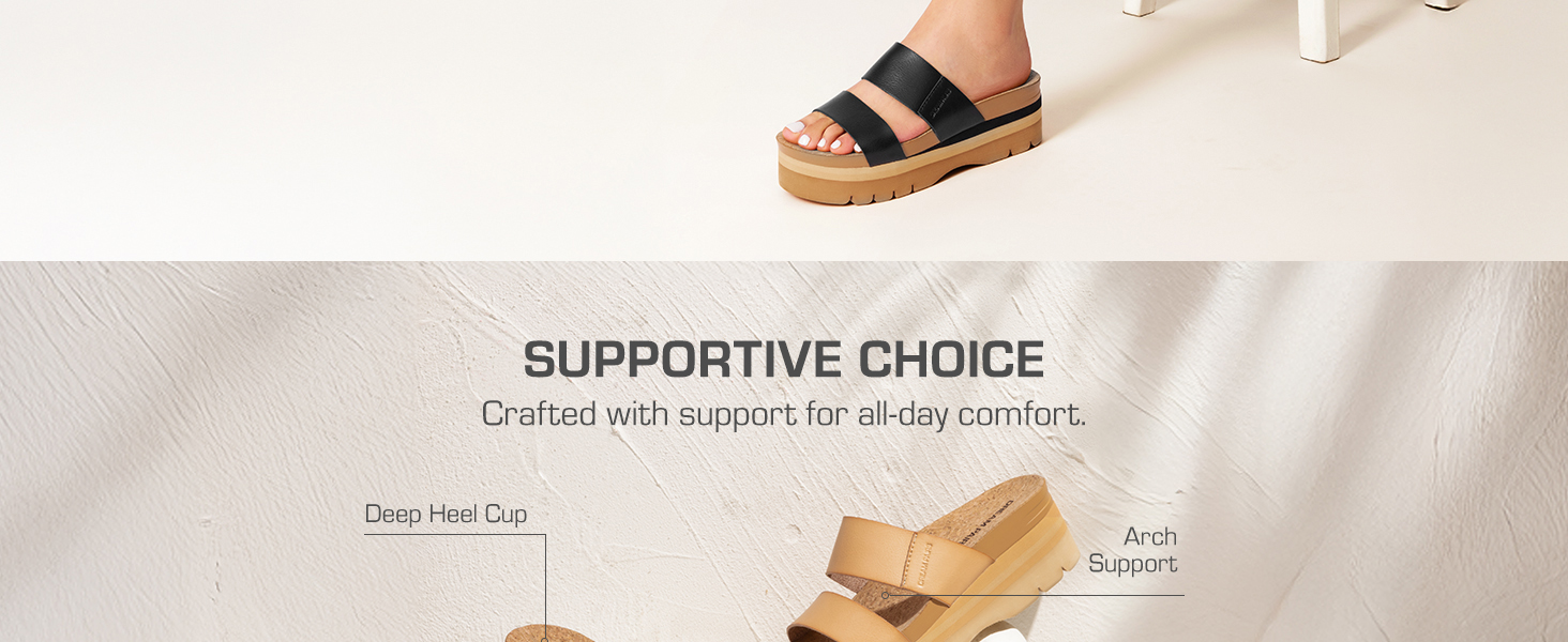 • Contoured Arch Support: Footbed follows the natural foot shape, providing all-day support and comfort.