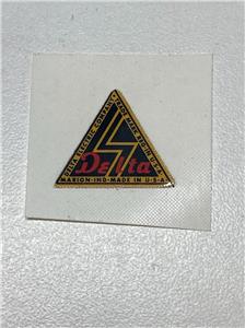 New Delta Electric Company decal for bicycle lights. This is the smallest version measuring 5/8" tall. Peel and stick.