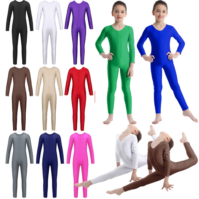 US Boys Girls Long Sleeve Full Body Unitard Leotard Jumpsuit Gymnastics Costume