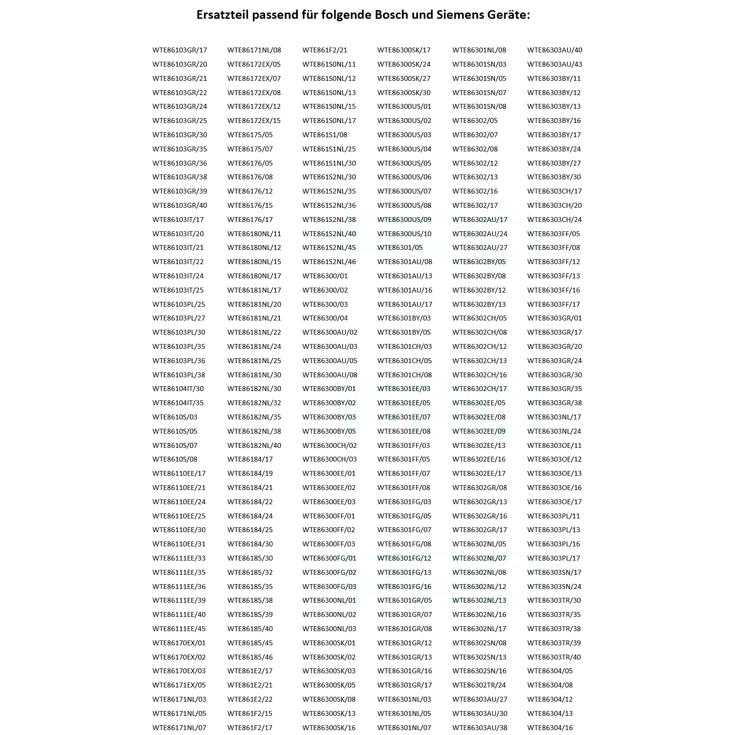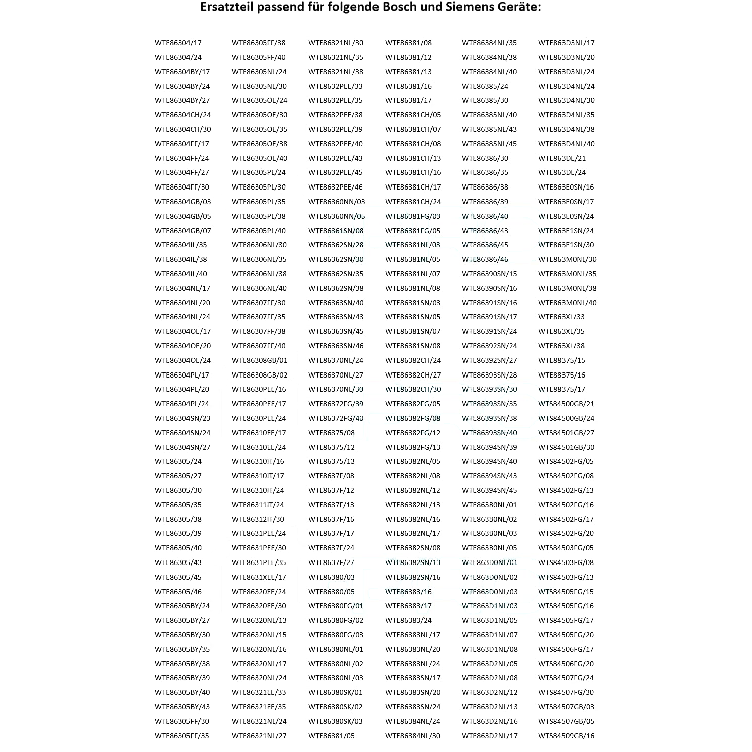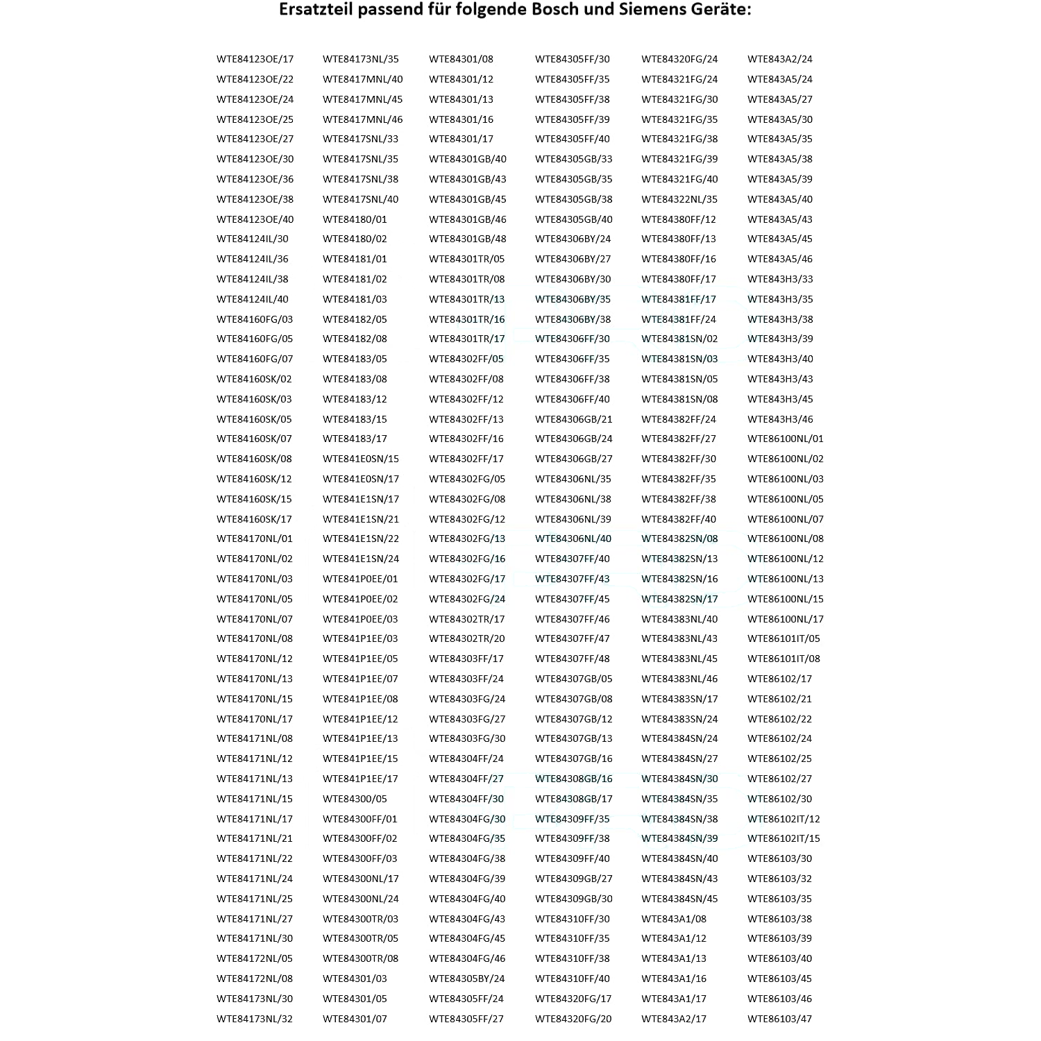 Für Bosch: WTE8410001, WTE8410002, WTE8410003, WTE8410004, WTE8410005, WTE8410008, WTE8410012, WTE8410015, WTE84100AU02, WTE84100AU03, WTE84100AU05, WTE84100AU08, WTE84100AU12, WTE84100AU13, WTE84100AU15, WTE84100AU17, WTE84100AU22, WTE84100BY01, WTE84100BY02, WTE84100BY03, WTE84100BY05, WTE84100BY08, WTE84100BY15, WTE84100BY17, WTE84100BY21, WTE84100CH02, WTE84100CH03, WTE84100CH05, WTE84100CH07, WTE84100CH08, WTE84100CH15, WTE84100CH17, WTE84100EE01, WTE84100EE02, WTE84100EE03, WTE84100FF01, WTE84100FF02, WTE84100FF03, WTE84100FF05, WTE84100FF07, WTE84100FF08, WTE84100FF12, WTE84100FF15, WTE84100FG01, WTE84100FG02, WTE84100FG03, WTE84100IT01, WTE84100IT02, WTE84100IT03, WTE84100NL01, WTE84100NL02, WTE84100NL03, WTE84100NL05, WTE84100NL07, WTE84100NL08, WTE84100NL12, WTE84100NL15, WTE84100NL17, WTE84100NL21, WTE84100NL22, WTE84100NL24, WTE84100NL25, WTE84100NL27, WTE84100NL30, WTE84100SK01, WTE84100SK02, WTE84100SK03, WTE84100SK05, WTE84100SK07, WTE84100SK08, WTE84100TR05, WTE84100TR08, WTE84100TR15, WTE84100TR17, WTE8410105, WTE8410107, WTE8410108, WTE8410112, WTE8410114, WTE8410115, WTE8410117, WTE8410121, WTE84101AU17, WTE84101AU21, WTE84101AU22, WTE84101AU24, WTE84101AU25, WTE84101AU27, WTE84101AU30, WTE84101CH03, WTE84101CH05, WTE84101CH08, WTE84101CH12, WTE84101CH15, WTE84101CH17, WTE84101CH21, WTE84101CH22, WTE84101CH24, WTE84101CH25, WTE84101CH27, WTE84101CH30, WTE84101EE03, WTE84101EE05, WTE84101EE07, WTE84101FF03, WTE84101FG03, WTE84101FG05, WTE84101FG08, WTE84101FG15, WTE84101FG17, WTE84101FG21, WTE84101FG22, WTE84101FG25, WTE84101FG27, WTE84101FR03, WTE84101FR05, WTE84101FR07, WTE84101FR08, WTE84101FR12, WTE84101FR13, WTE84101FR15, WTE84101FR17, WTE84101IT03, WTE84101IT05, WTE84101IT08, WTE84101IT15, WTE84101NL30, WTE84101SN05, WTE84101SN08, WTE84101SN12, WTE84101SN13, WTE84101SN15, WTE84101SN17, WTE84101TR17, WTE84101TR20, WTE84101TR22, WTE84101TR24, WTE84101TR25, WTE84101TR30, WTE84102EE05, WTE84102EE08, WTE84102EE15, WTE84102FG05, WTE84102FG08, WTE84102FG13, WTE84102FG15, WTE84102FG17, WTE84102FG22, WTE84102FG24, WTE84102FG25, WTE84102FG27, WTE84102FG30, WTE84102GB03, WTE84102GB05, WTE84102GB07, WTE84102SN17, WTE84102SN21, WTE84102SN22, WTE84102SN24, WTE84102SN25, WTE84102SN27, WTE84102SN30, WTE84102SN32, WTE84102SN34, WTE84103FF17, WTE84103FF21, WTE84103FF22, WTE84103FF24, WTE84103FG30, WTE84103GB05, WTE84103GB08, WTE84103GB12, WTE84103GB15, WTE84103NL17, WTE84103NL20, WTE84103NL22, WTE84103NL24, WTE84103NL25, WTE84103NL30, WTE84103NL32, WTE84104FF30, WTE84104GB16, WTE84104GB17, WTE84104GB21, WTE84104GB22, WTE84104NL30, WTE84105GB21, WTE84105GB22, WTE84105GB24, WTE84105GB25, WTE84105GB27, WTE84105GB30, WTE84105GB31, WTE84107GB01, WTE84107GB02, WTE84107GB03, WTE84120BY03, WTE84120BY05, WTE84120FG01, WTE84120FG02, WTE84120FG03, WTE84120FG05, WTE84120FG07, WTE84120FG08, WTE84120FG12, WTE84120FG15, WTE84120FG17, WTE84121BY05, WTE84121BY08, WTE84121BY12, WTE84121BY15, WTE84121FG15, WTE84121FG17, WTE84122BY11, WTE84122BY12, WTE84122BY13, WTE84122BY15, WTE84122BY17, WTE84123BY17, WTE84123BY22, WTE84123BY24, WTE84123BY25, WTE84123BY27, WTE84123BY30, WTE84123OE17, WTE84123OE22, WTE84123OE24, WTE84123OE25, WTE84123OE27, WTE84123OE30, WTE84160FG03, WTE84160FG05, WTE84160FG07, WTE84160SK02, WTE84160SK03, WTE84160SK05, WTE84160SK07, WTE84160SK08, WTE84160SK12, WTE84160SK15, WTE84160SK17, WTE84170NL01, WTE84170NL02, WTE84170NL03, WTE84170NL05, WTE84170NL07, WTE84170NL08, WTE84170NL12, WTE84170NL13, WTE84170NL15, WTE84170NL17, WTE84171NL08, WTE84171NL12, WTE84171NL13, WTE84171NL15, WTE84171NL17, WTE84171NL21, WTE84171NL22, WTE84171NL24, WTE84171NL25, WTE84171NL27, WTE84171NL30, WTE84172NL05, WTE84172NL08, WTE84173NL30, WTE84173NL32, WTE8417SNL33, WTE8418001, WTE8418002, WTE8418101, WTE8418102, WTE8418103, WTE8418205, WTE8418208, WTE8418305, WTE8418308, WTE8418312, WTE8418315, WTE8418317, WTE841E0SN15, WTE841E0SN17, WTE841E1SN17, WTE841E1SN21, WTE841E1SN22, WTE841E1SN24, WTE841P0EE01, WTE841P0EE02, WTE841P0EE03, WTE841P1EE03, WTE841P1EE05, WTE841P1EE07, WTE841P1EE08, WTE841P1EE12, WTE841P1EE13, WTE841P1EE15, WTE841P1EE17, WTE8430005, WTE84300FF01, WTE84300FF02, WTE84300FF03, WTE84300NL17, WTE84300NL24, WTE84300TR03, WTE84300TR05, WTE84300TR08, WTE8430103, WTE8430105, WTE8430107, WTE8430108, WTE8430112, WTE8430113, WTE8430116, WTE8430117, WTE84301TR05, WTE84301TR08, WTE84301TR13, WTE84301TR16, WTE84301TR17, WTE84302FF05, WTE84302FF08, WTE84302FF12, WTE84302FF13, WTE84302FF16, WTE84302FF17, WTE84302FG05, WTE84302FG08, WTE84302FG12, WTE84302FG13, WTE84302FG16, WTE84302FG17, WTE84302FG24, WTE84302TR17, WTE84302TR20, WTE84303FF17, WTE84303FF24, WTE84303FG24, WTE84303FG27, WTE84303FG30, WTE84304FF24, WTE84304FF27, WTE84304FF30, WTE84304FG30, WTE84305BY24, WTE84305FF24, WTE84305FF27, WTE84305FF30, WTE84305GB33, WTE84306BY24, WTE84306BY27, WTE84306BY30, WTE84306FF30, WTE84306GB21, WTE84306GB24, WTE84306GB27, WTE84307GB05, WTE84307GB08, WTE84307GB12, WTE84307GB13, WTE84307GB16, WTE84308GB16, WTE84308GB17, WTE84309GB27, WTE84309GB30, WTE84310FF30, WTE84320FG17, WTE84320FG20, WTE84320FG24, WTE84321FG24, WTE84321FG30, WTE84380FF12, WTE84380FF13, WTE84380FF16, WTE84380FF17, WTE84381FF17, WTE84381FF24, WTE84381SN02, WTE84381SN03, WTE84381SN05, WTE84381SN08, WTE84382FF24, WTE84382FF27, WTE84382FF30, WTE84382SN08, WTE84382SN13, WTE84382SN16, WTE84382SN17, WTE84383SN17, WTE84383SN24, WTE84384SN24, WTE84384SN27, WTE84384SN30, WTE843A108, WTE843A112, WTE843A113, WTE843A116, WTE843A117, WTE843A217, WTE843A224, WTE843A524, WTE843A527, WTE843A530, WTE843H333, WTE86100NL01, WTE86100NL02, WTE86100NL03, WTE86100NL05, WTE86100NL07, WTE86100NL08, WTE86100NL12, WTE86100NL13, WTE86100NL15, WTE86100NL17, WTE86101IT05, WTE86101IT08, WTE8610217, WTE8610221, WTE8610222, WTE8610224, WTE8610225, WTE8610227, WTE8610230, WTE86102IT12, WTE86102IT15, WTE8610330, WTE8610332, WTE86103GR17, WTE86103GR20, WTE86103GR21, WTE86103GR22, WTE86103GR24, WTE86103GR25, WTE86103GR30, WTE86103IT17, WTE86103IT20, WTE86103IT21, WTE86103IT22