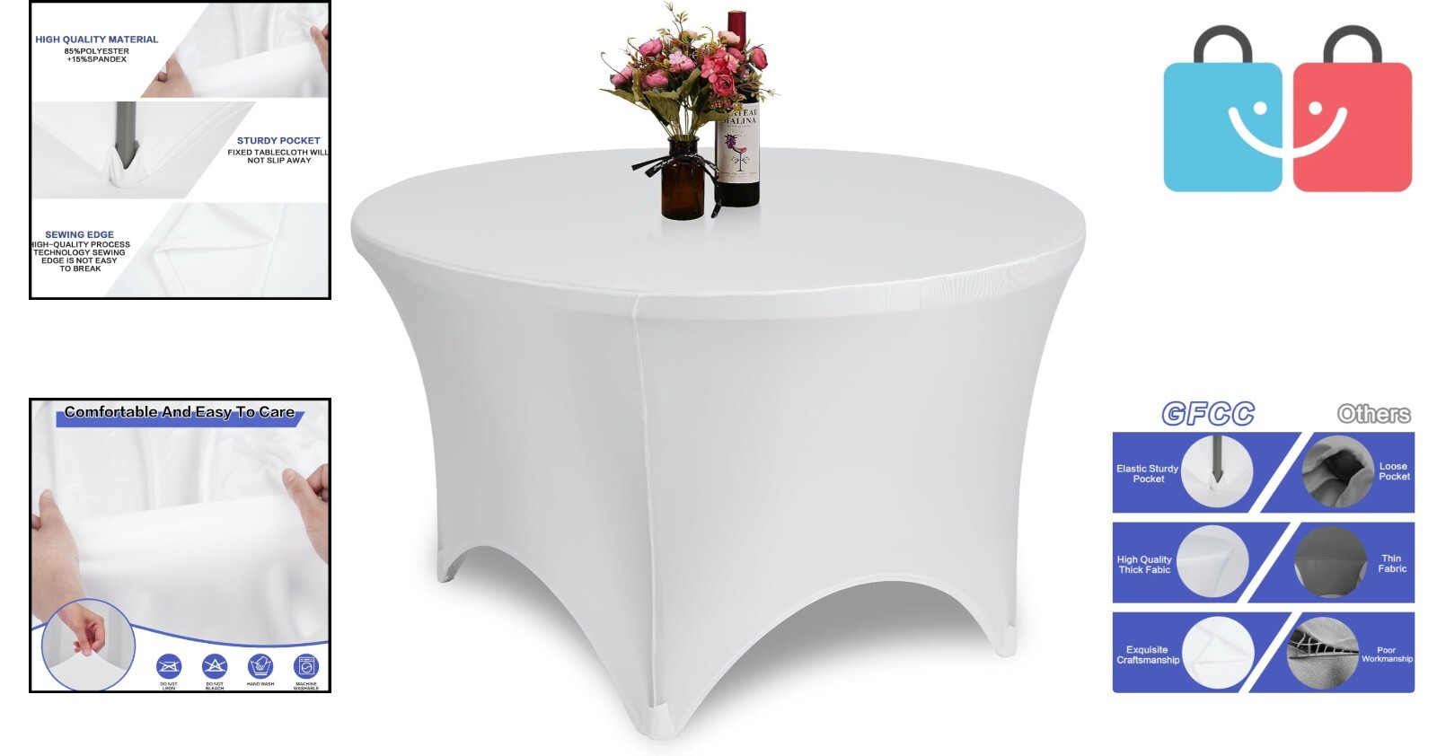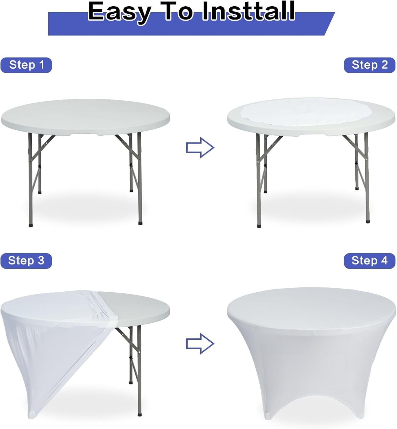 Four-way stretch pockets ensure a secure fit for different size round tables.