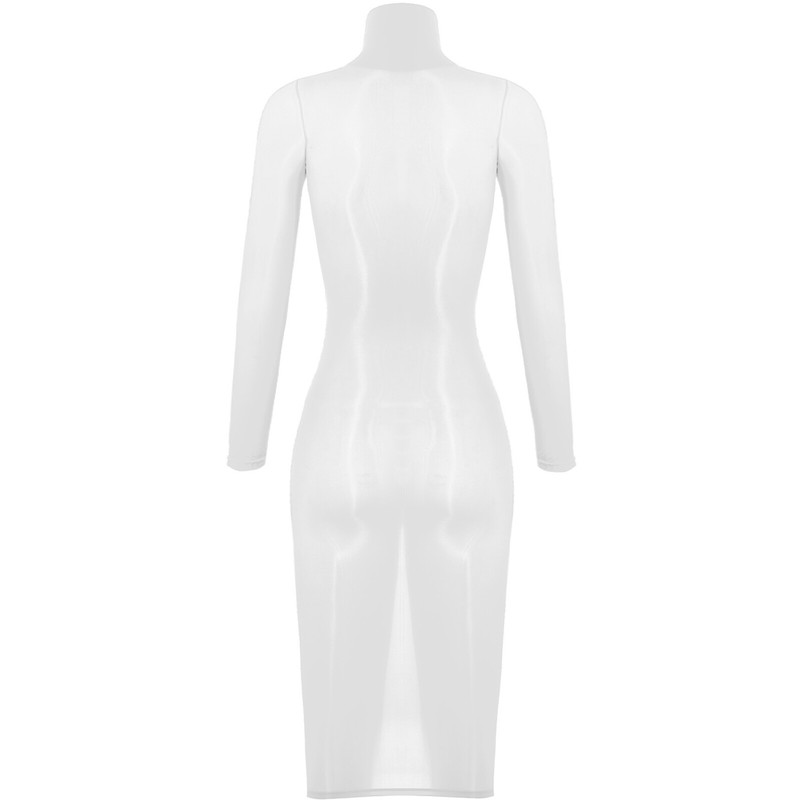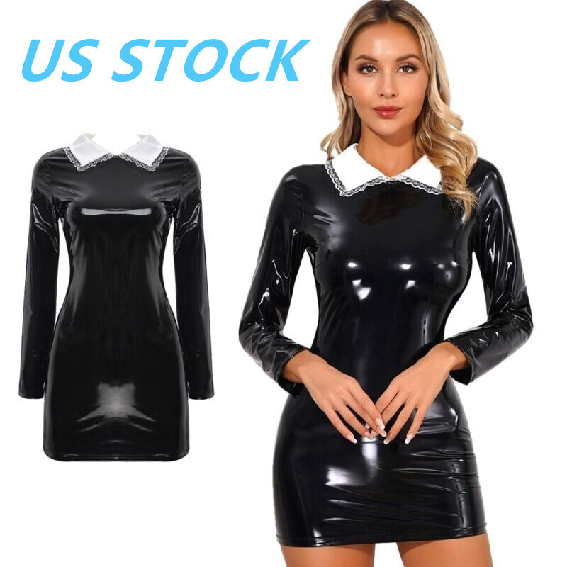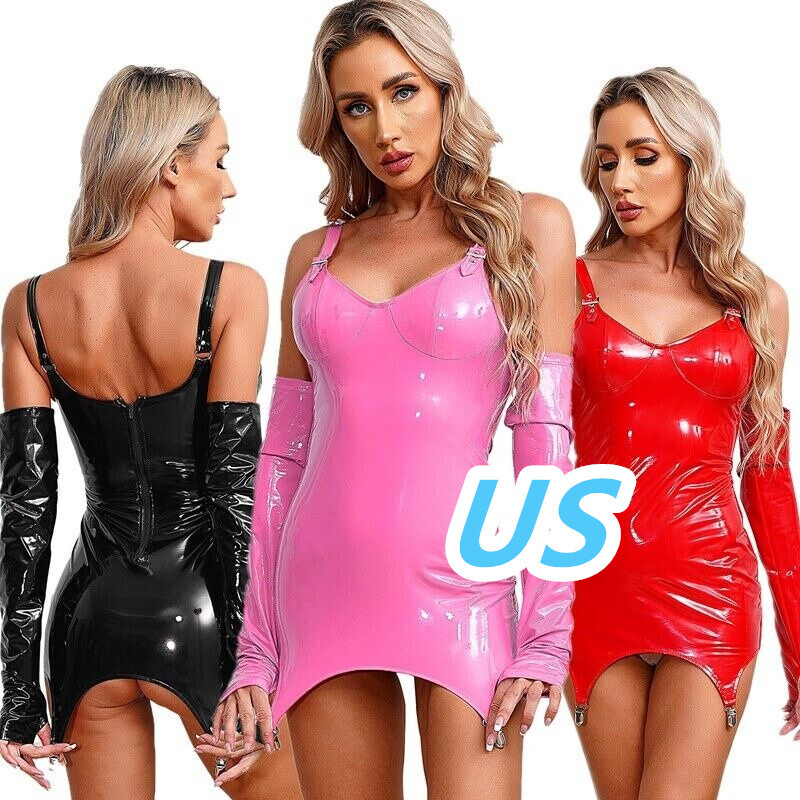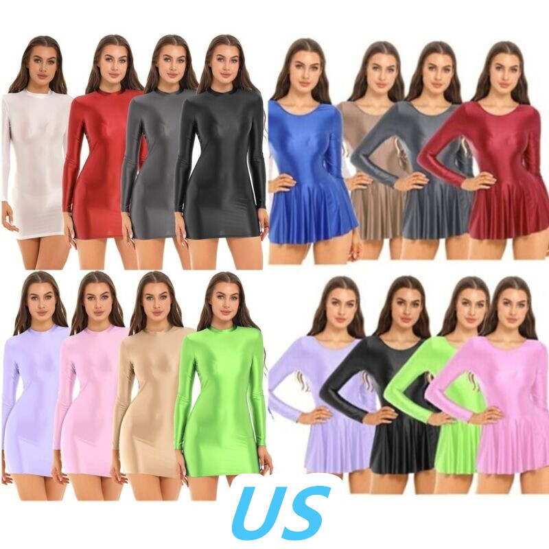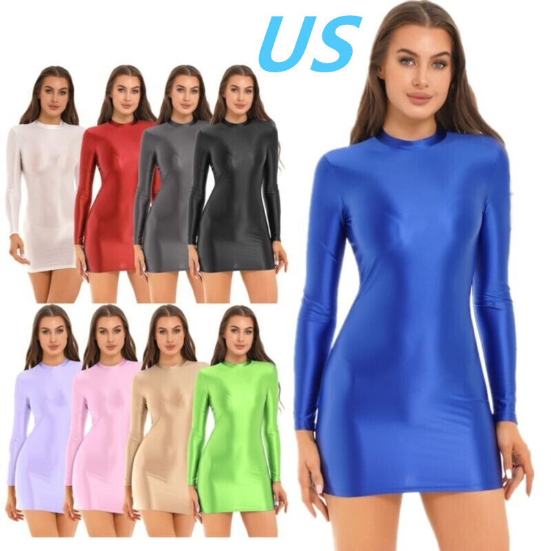 Glossy lingerie dress is designed with mock neck or halter neck, long sleeve or sleeveless, perfect body fitting, making you sexy.