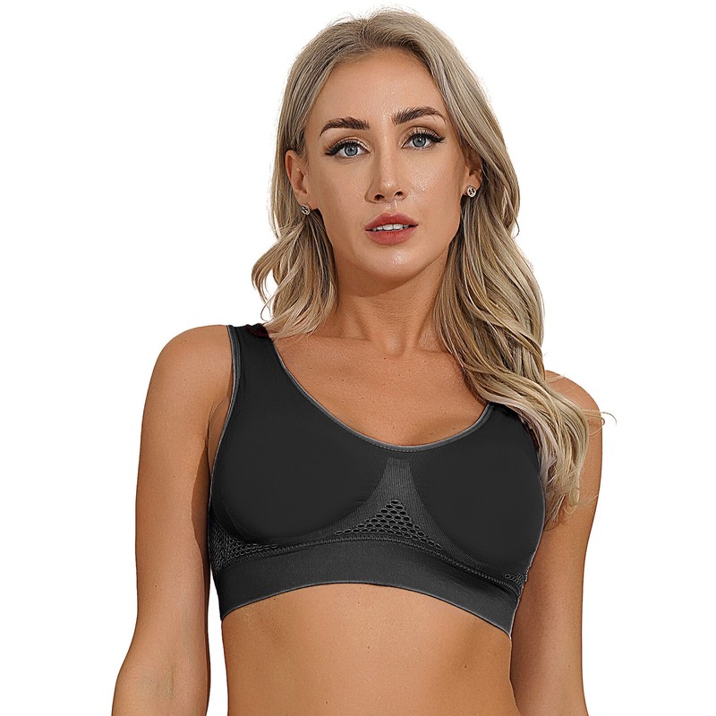 Womens seamless mesh sport bra wide shoulder straps removable cup mats high elastic bra for workout yoga.