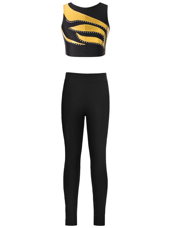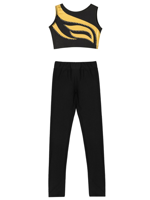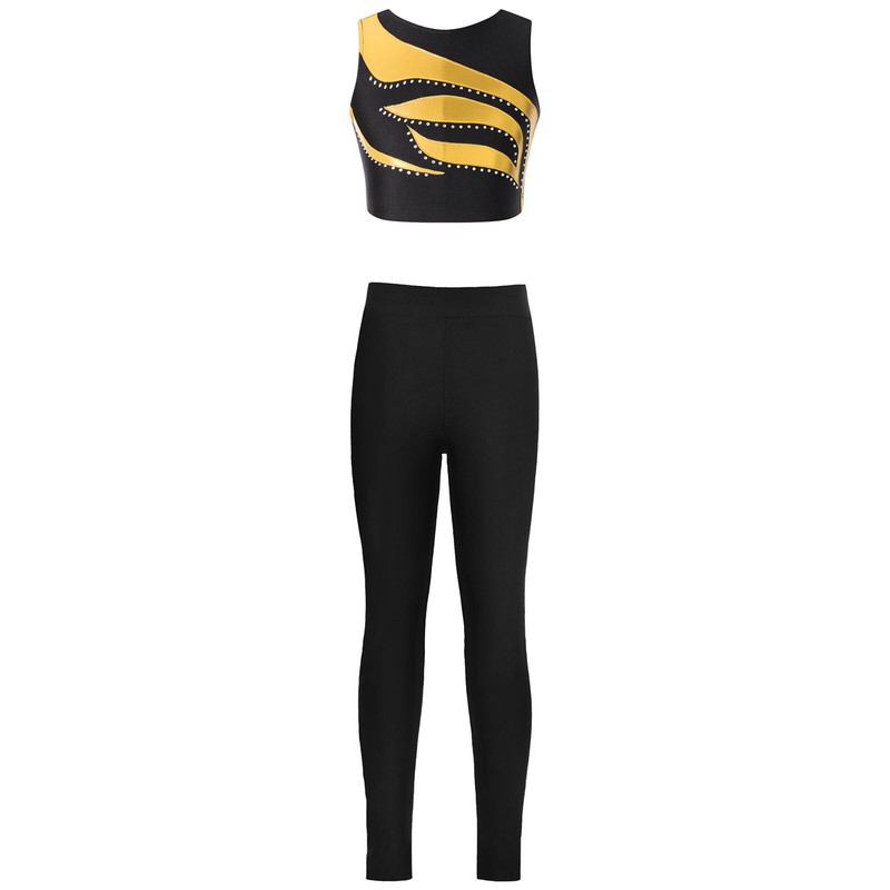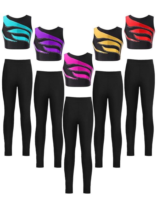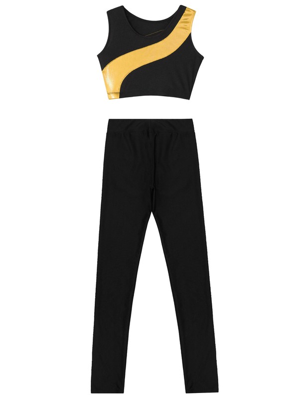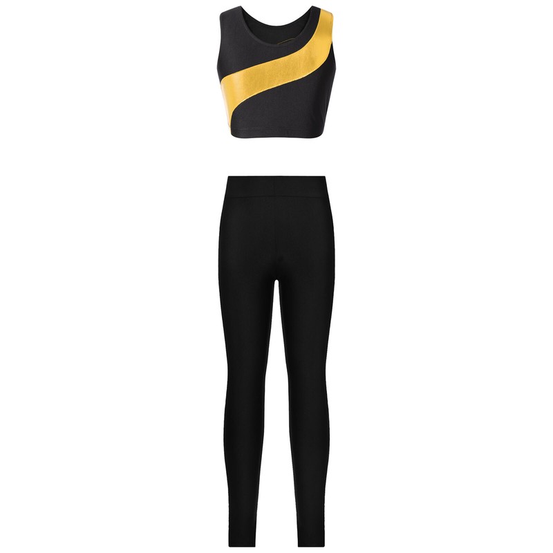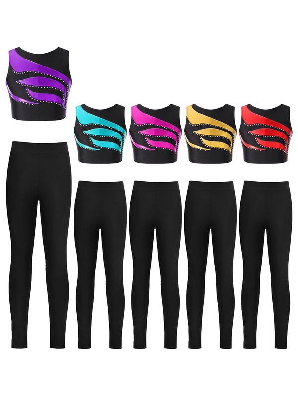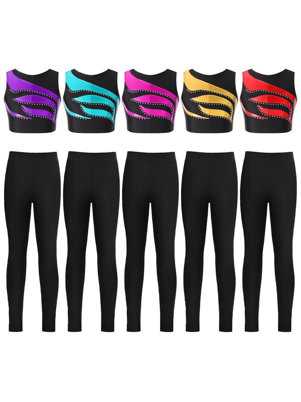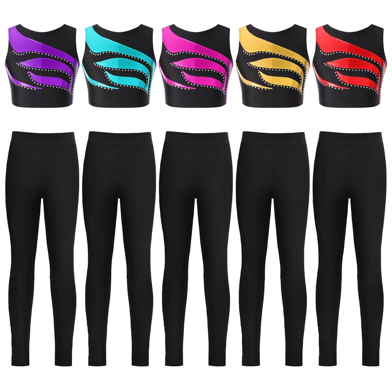 Girls Kids Dancewear Black Tights Outfit Gymnastics Sets Activewear Clothing
