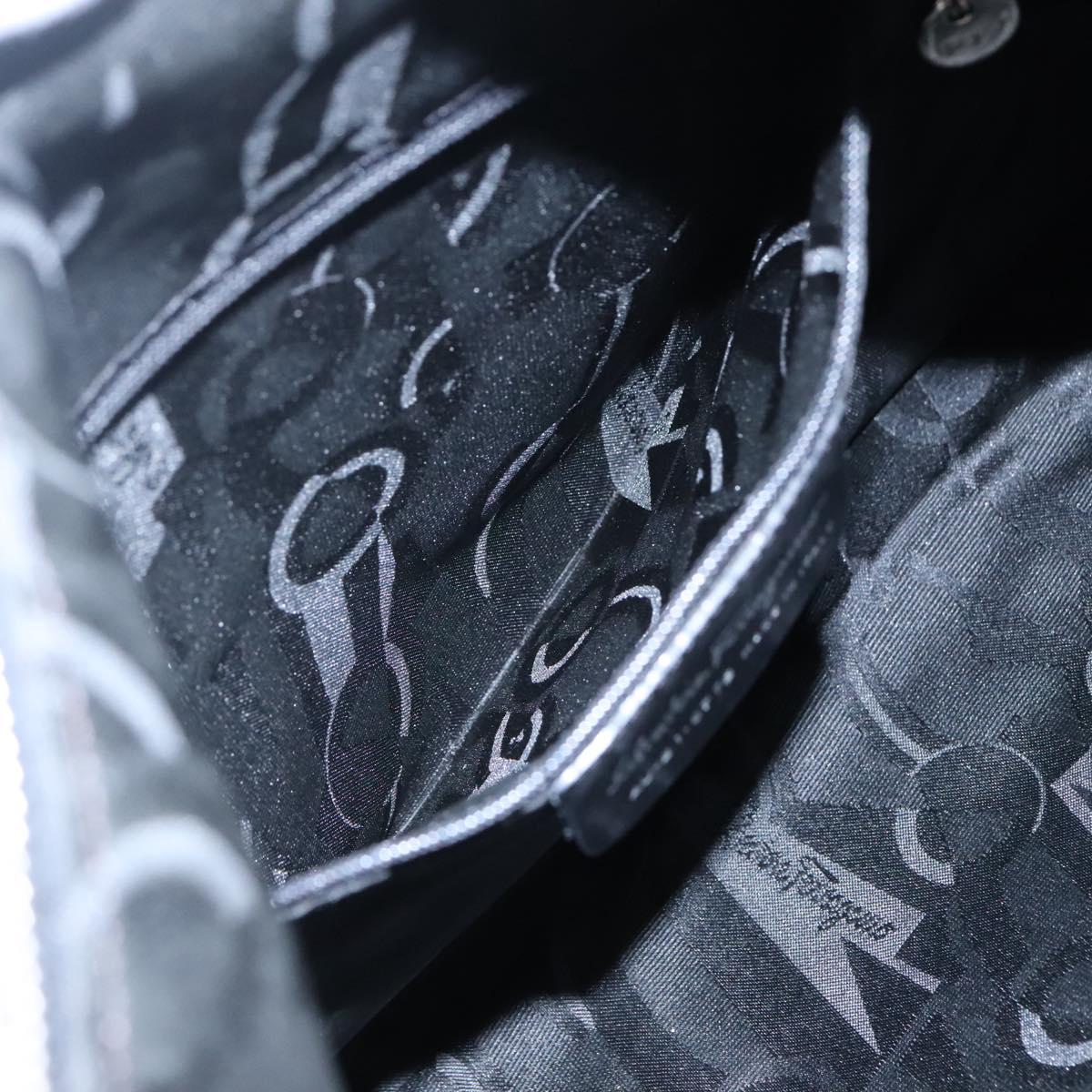 Salvatore Ferragamo Shoulder Bag Canvas Gray Black Silver Auth bs22485