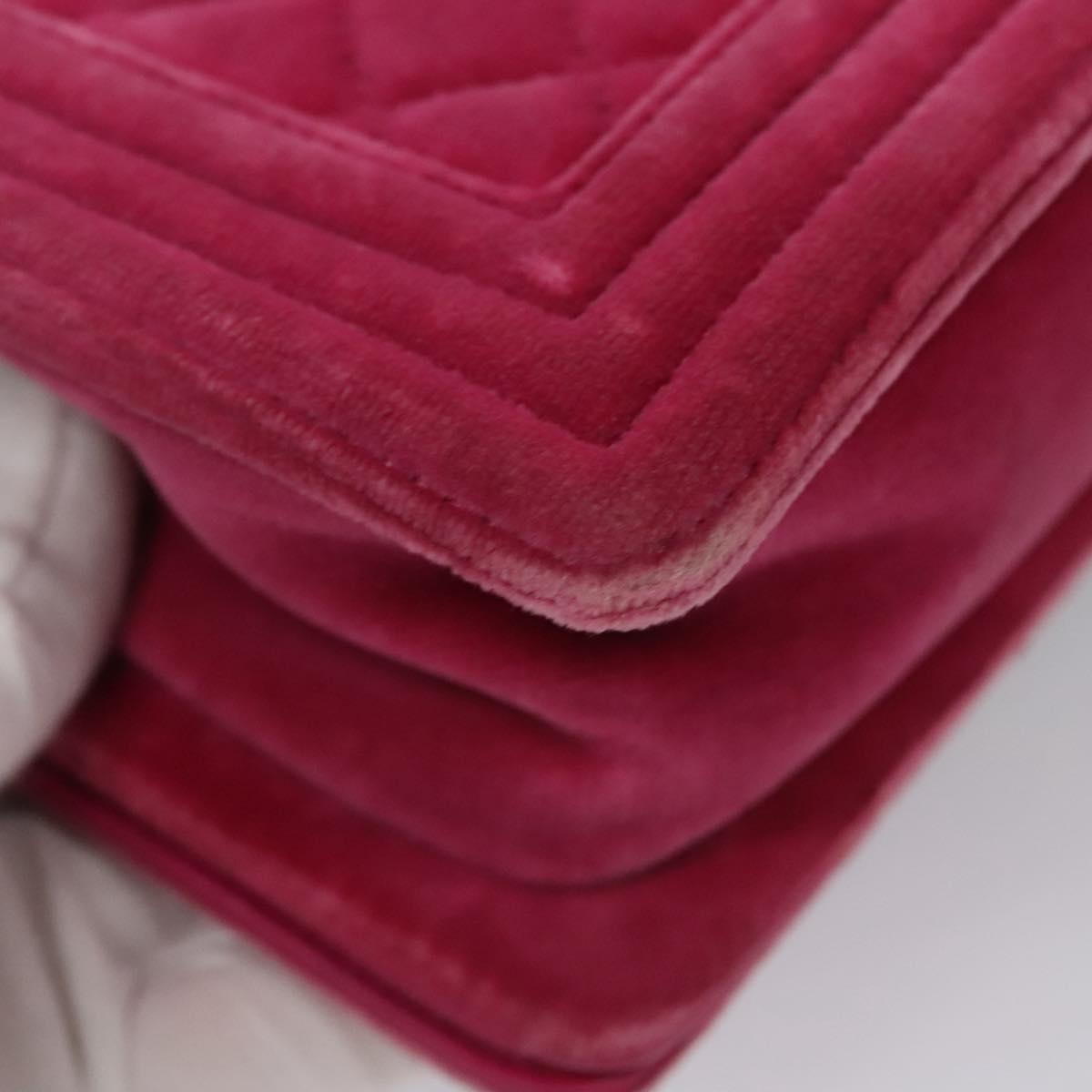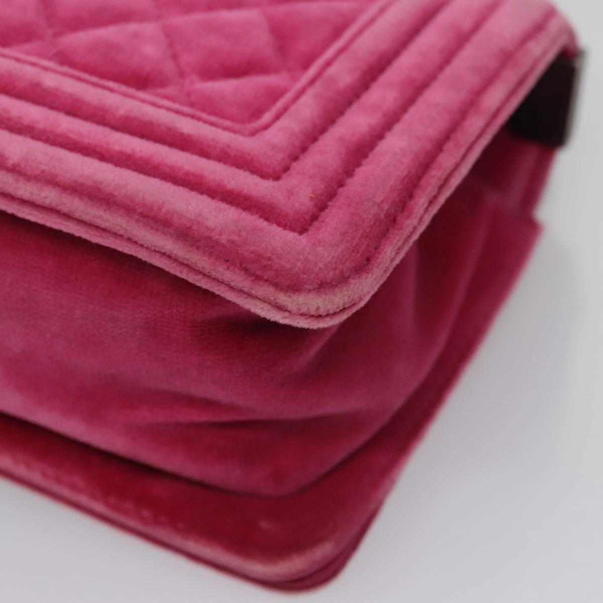 CHANEL Chain Boy Chanel Matelasse Shoulder Bag Velor Pink CC Auth BA245