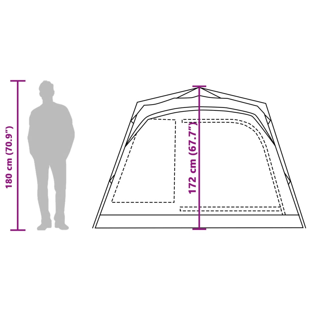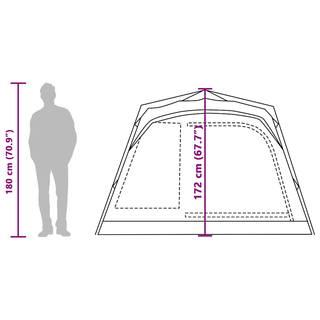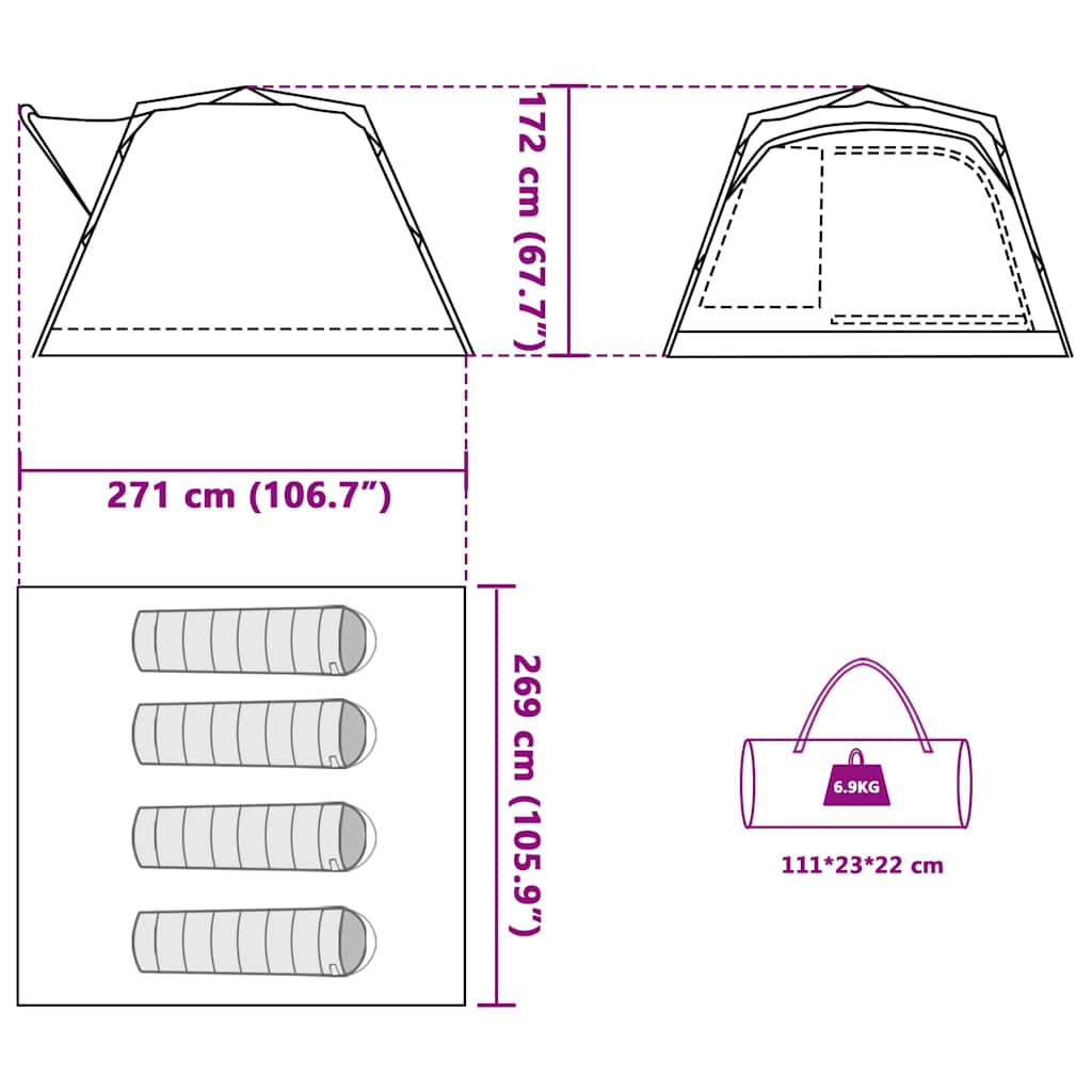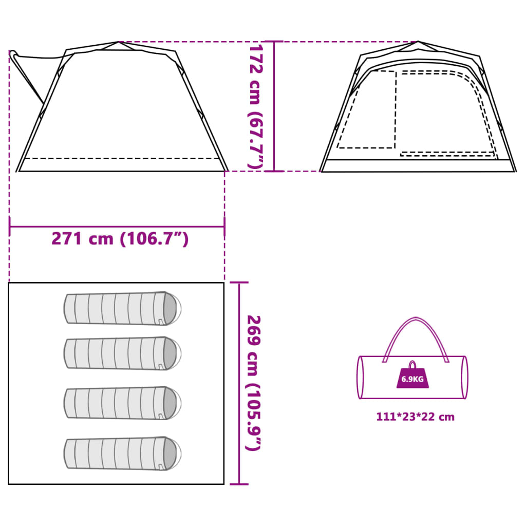 External tent dimensions: 271 x 269 x 172 cm (L x W x H)