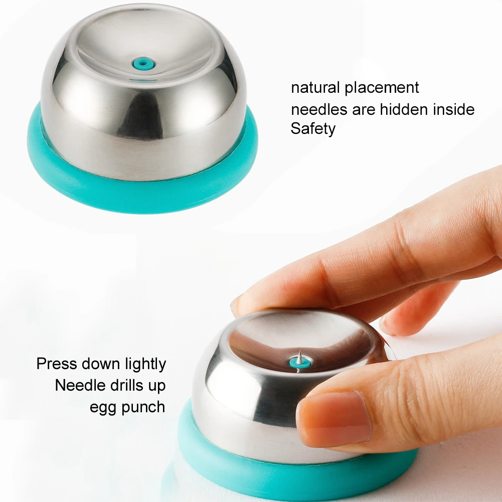 3. The egg piercer hole separator is easy to use, you just need to place this egg piercer on the table, then set the wide end of a raw egg in the spring loaded platform and gently press down to pierce the egg shell, super simple in operation.