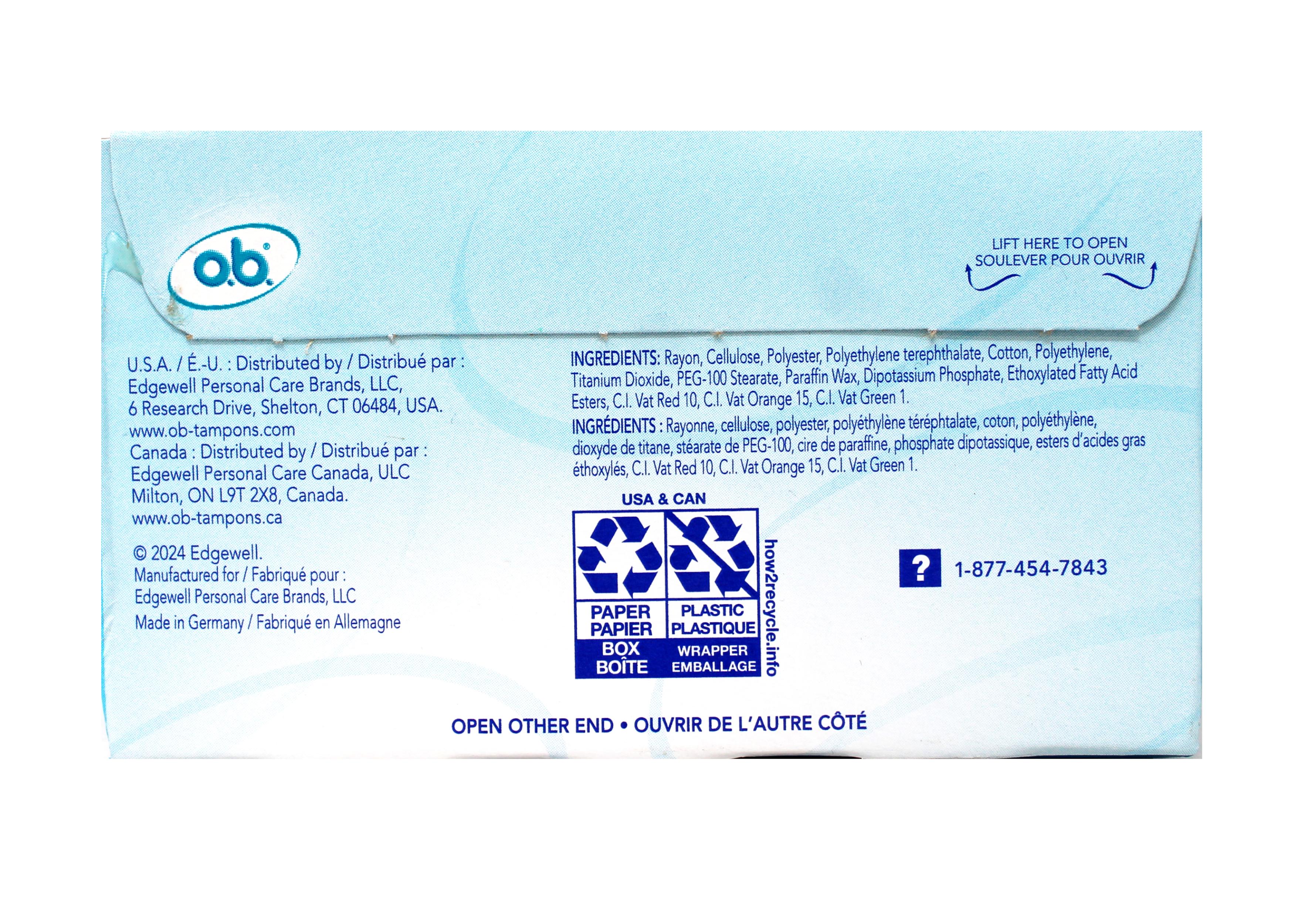 Experience up to 100% comfort and protection with o.b. tampons! As the first-ever digital, non applicator tampons, o.b. tampons are a revolutionary solution in the world of period protection. These o.b. tampons provide a custom fit that is designed to adapt to your unique body so you can move through your day without worry. ob tampons expand evenly all around, while fluid-lock grooves stop leaks in their tracks. These tampons without applicators also create less waste vs. applicator tampons and are free from elemental chlorine and fragrance. Created by a trailblazing female gynecologist, trust o.b. to deliver the perfect balance of effectiveness and comfort.Cotton Made in US UP TO 100% COMFORT AND PROTECTION – o.b. tampons are discreet in size yet still provide mighty period protection, so you can conquer your day with confidence CUSTOM FIT – Adjusts to your unique shape LEAK PROTECTION – o.b. tampons are designed to expand evenly all around, with fluid-lock grooves for leak protection PROTECTION FOR YOU AND THE ENVIRONMENT – Applicator free for less waste,* elemental chlorine free, and fragrance free. Only what you need, nothing you don't *vs. applicator tampons TINY AND MIGHTY – o.b.'s small size makes it perfect to take on-the-go in your purse or pocket