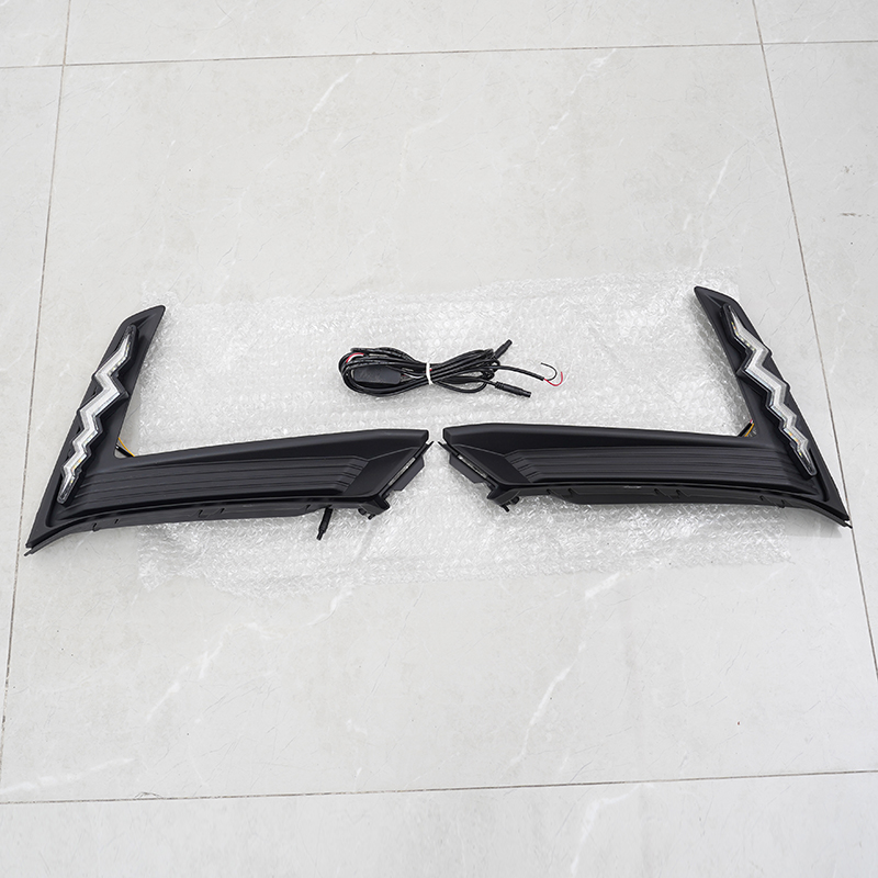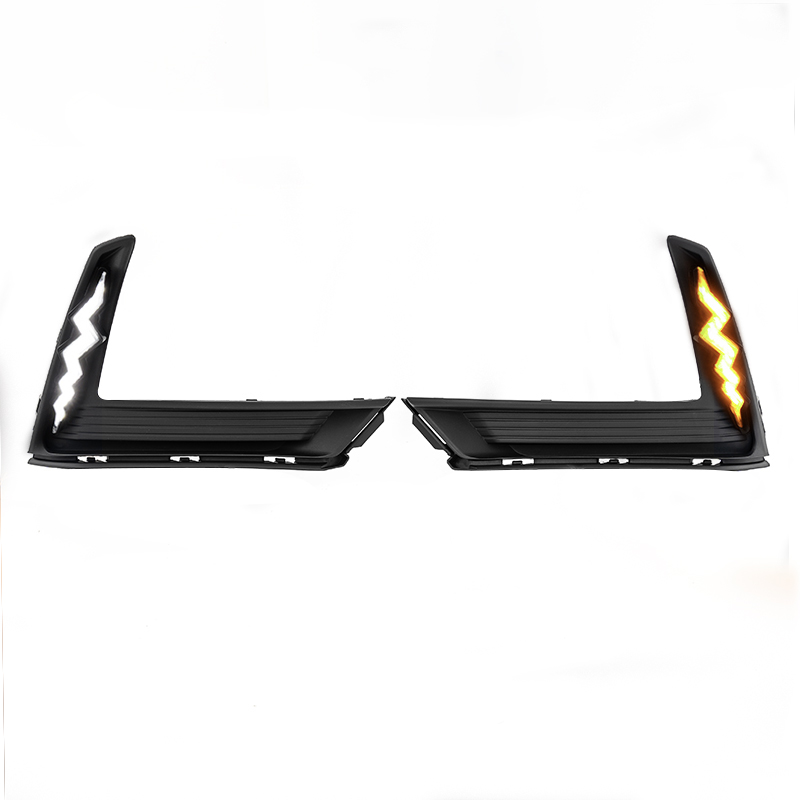 It will keep white color lights on as daytime running lights, and it will change to amber yellow flashing when you turn left or right,