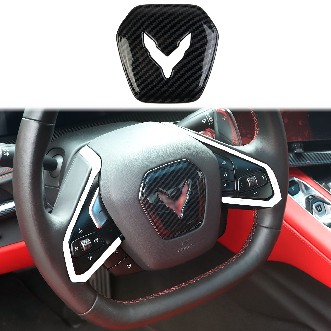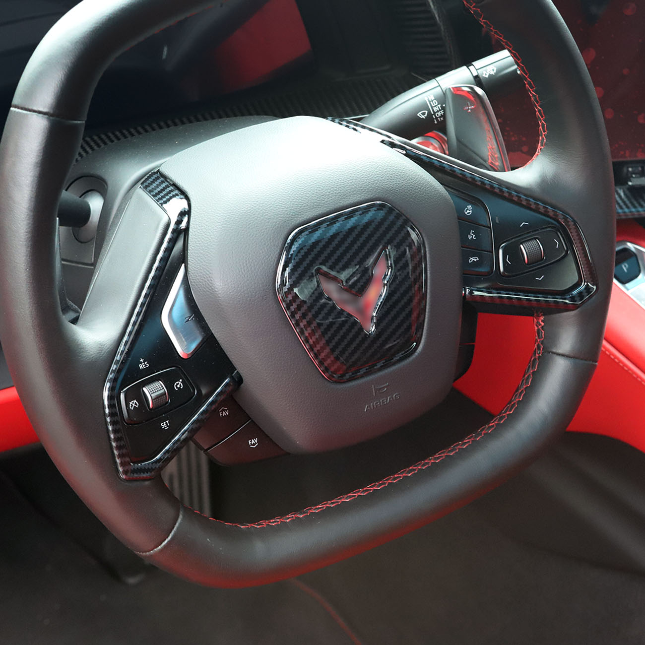 Carbon fiber Style Interior Steering Wheel Trim Cover Fit For Chevrolet Corvette C8 2020-2025 decoration Accessories