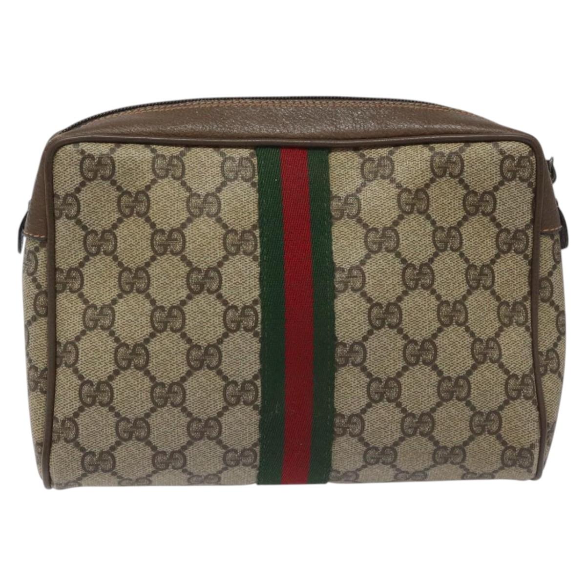 GUCCI GG Supreme Web Sherry Line Clutch Bag PVC Beige Red 89 01 012 Auth th5649