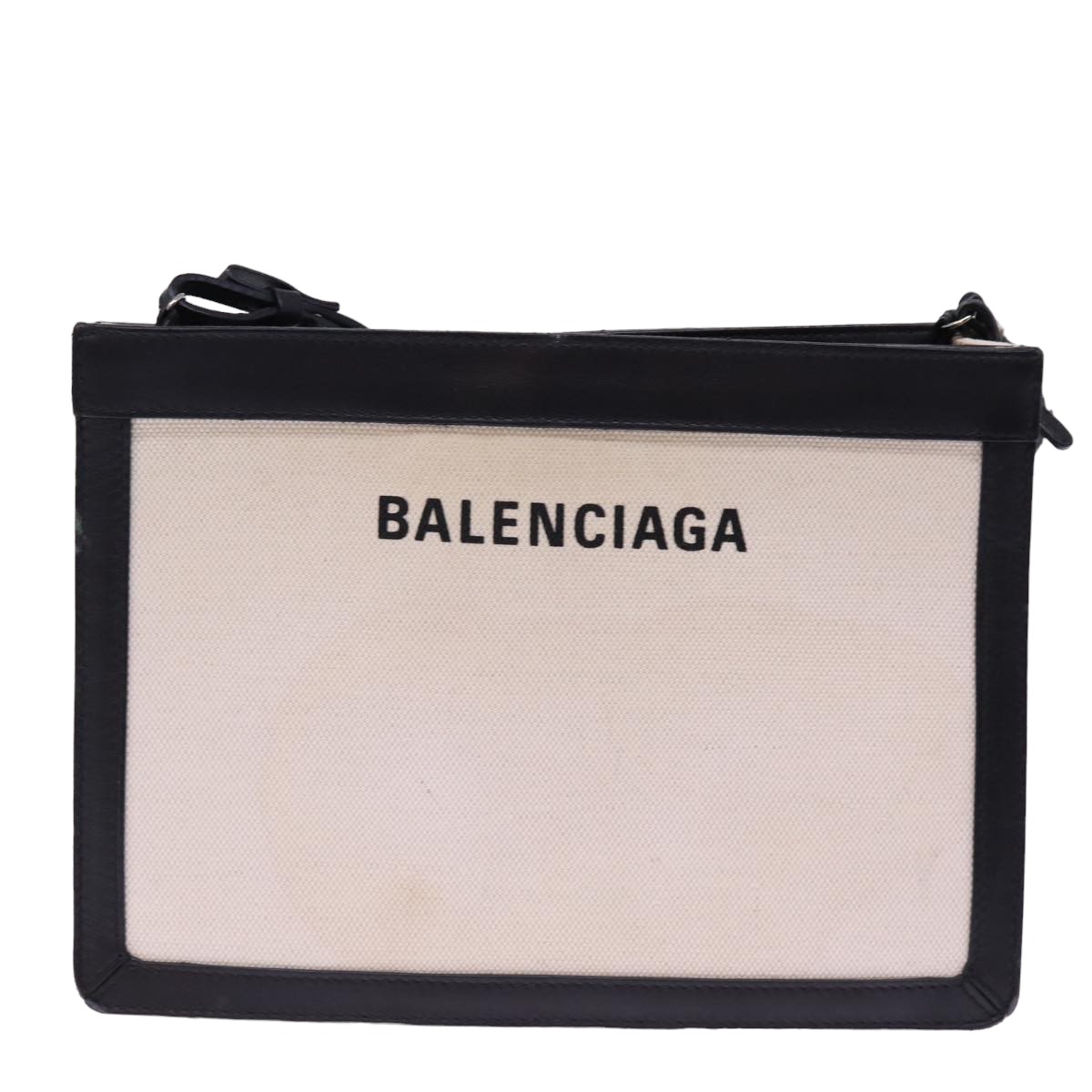 BALENCIAGA Navy Pochette Shoulder Bag Canvas Black White 339937 Auth bs14976