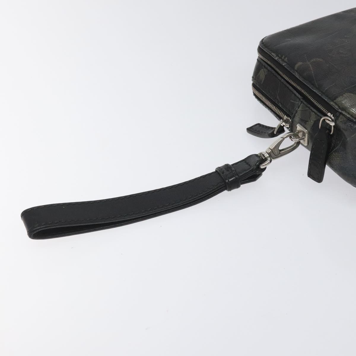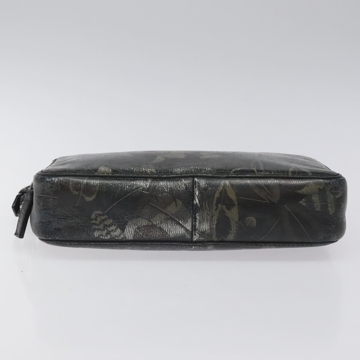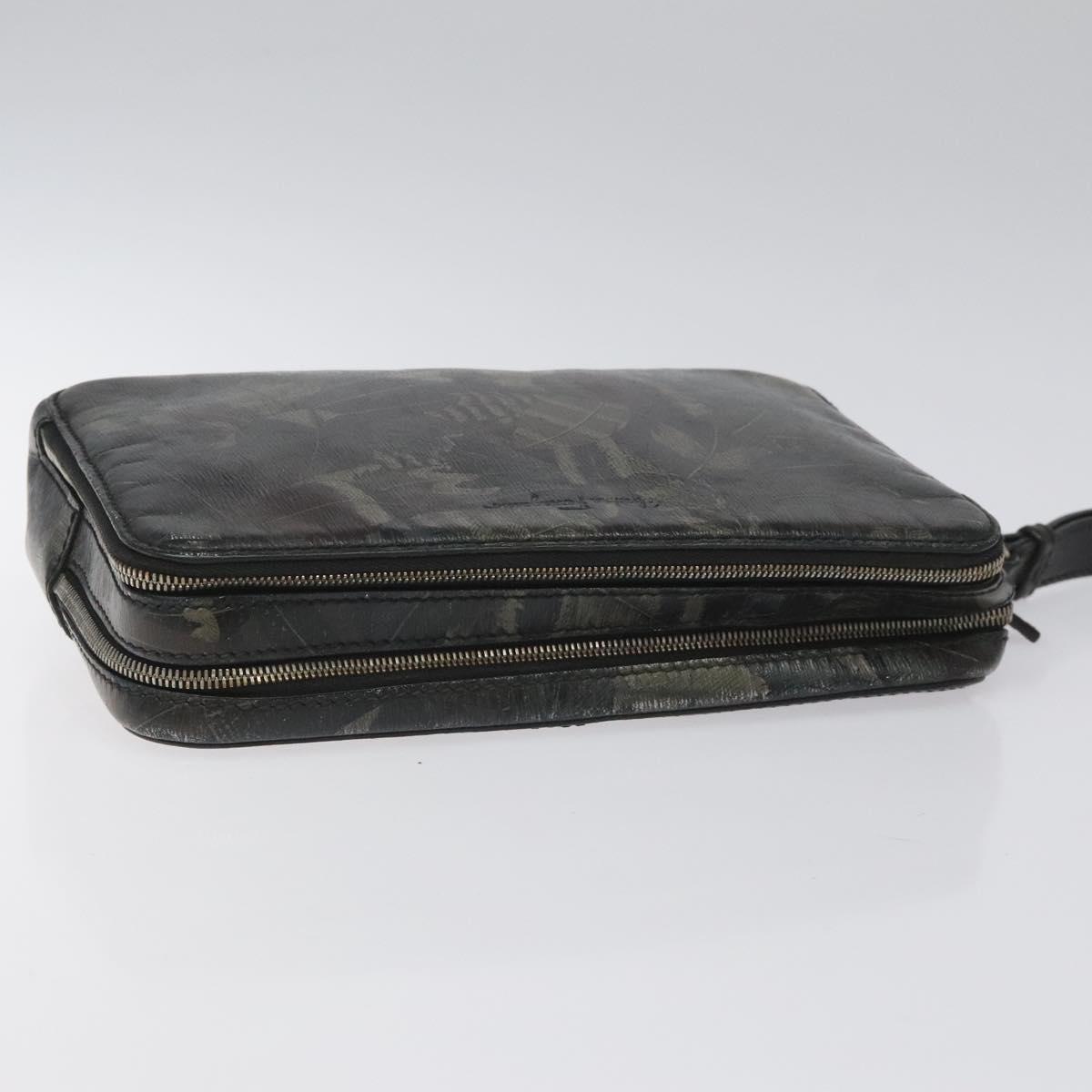 Salvatore Ferragamo Clutch Bag Leather Black Gold Auth bs23562