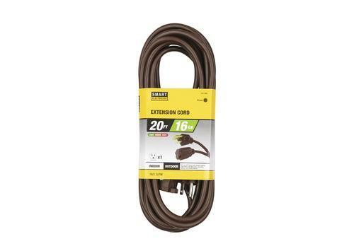This outdoor extension cord works perfectly to provide power indoors and outdoors for light-duty applications. Extending 20 feet, you'll get more versatility and mobility for your outdoor tools and decorations. This cord works great in conjunction with power tools, portable lights, lawn tools, appliances, decorative lights, and holiday displays. The brown PVC jacket blends in with the outdoors, and it resists moisture, abrasion, and exposure to sunlight.
