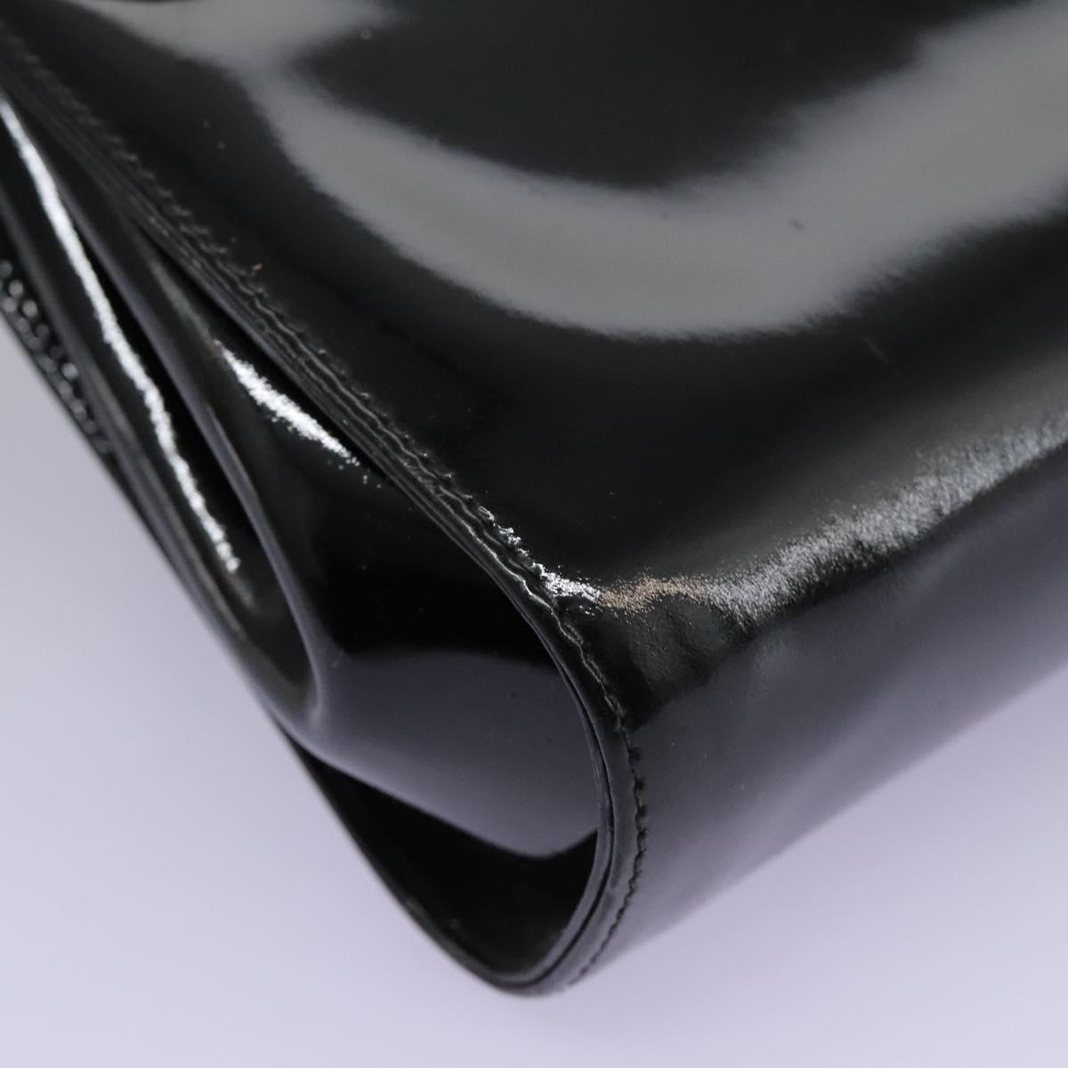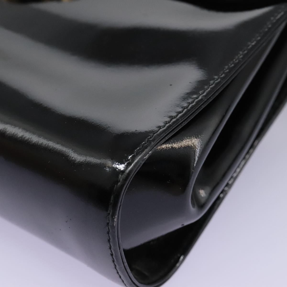 Salvatore Ferragamo Gancini Shoulder Bag Enamel Black Gold Auth 112878