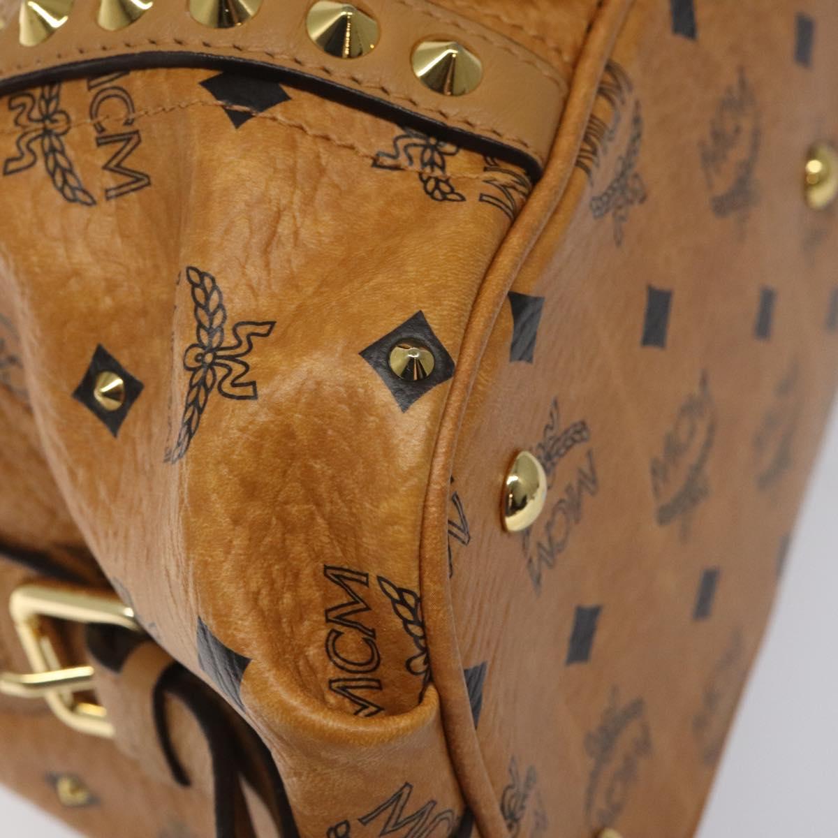 MCM Vicetos Logogram Hand Bag PVC Leather Brown Gold Auth ki5520