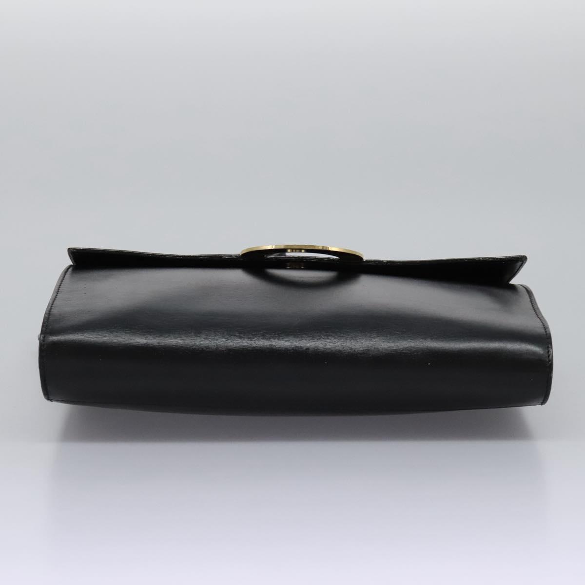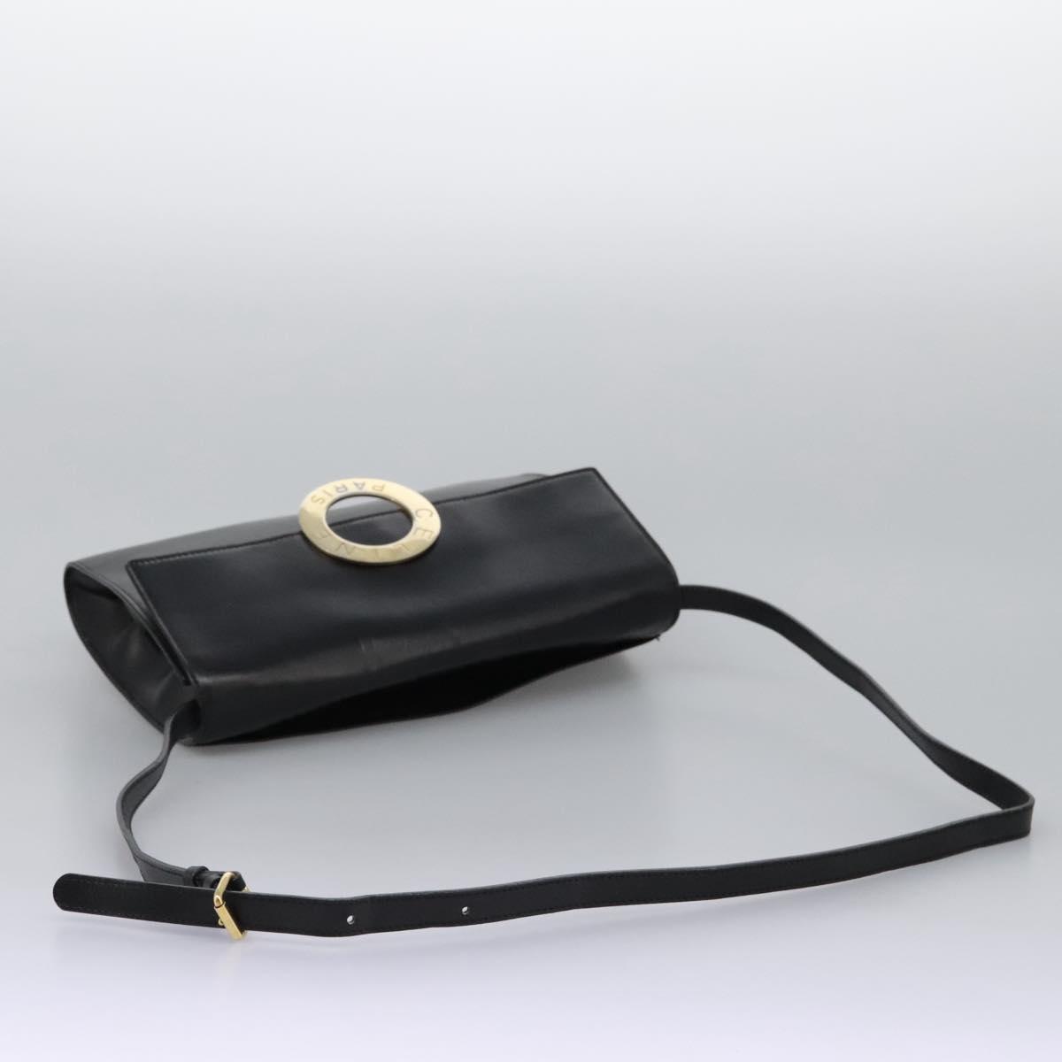 CELINE Circle Shoulder Bag Leather Black Gold Auth BD909