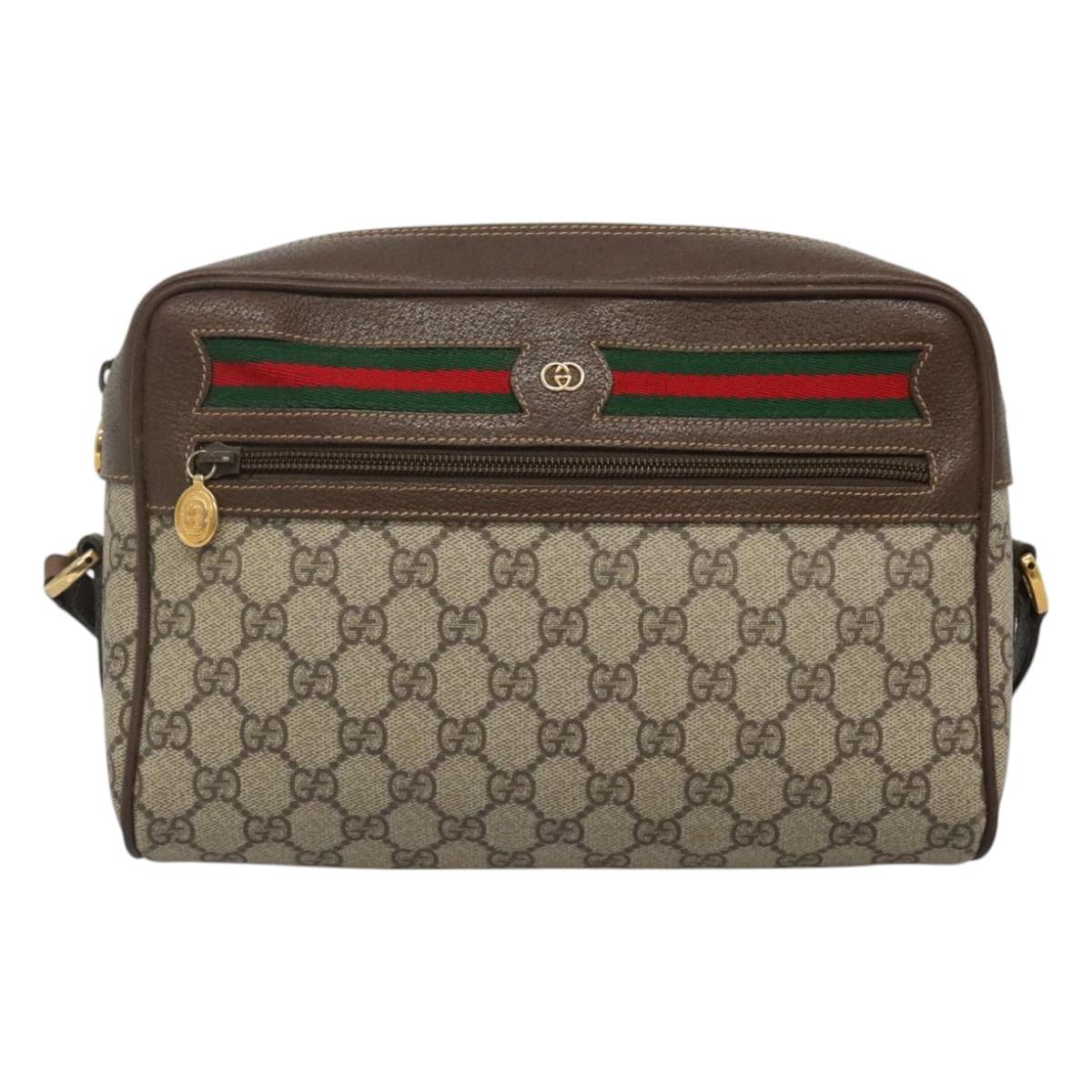GUCCI GG Supreme Web Sherry Line Bag PVC Beige 4023 001 56 6472 Auth ep7946