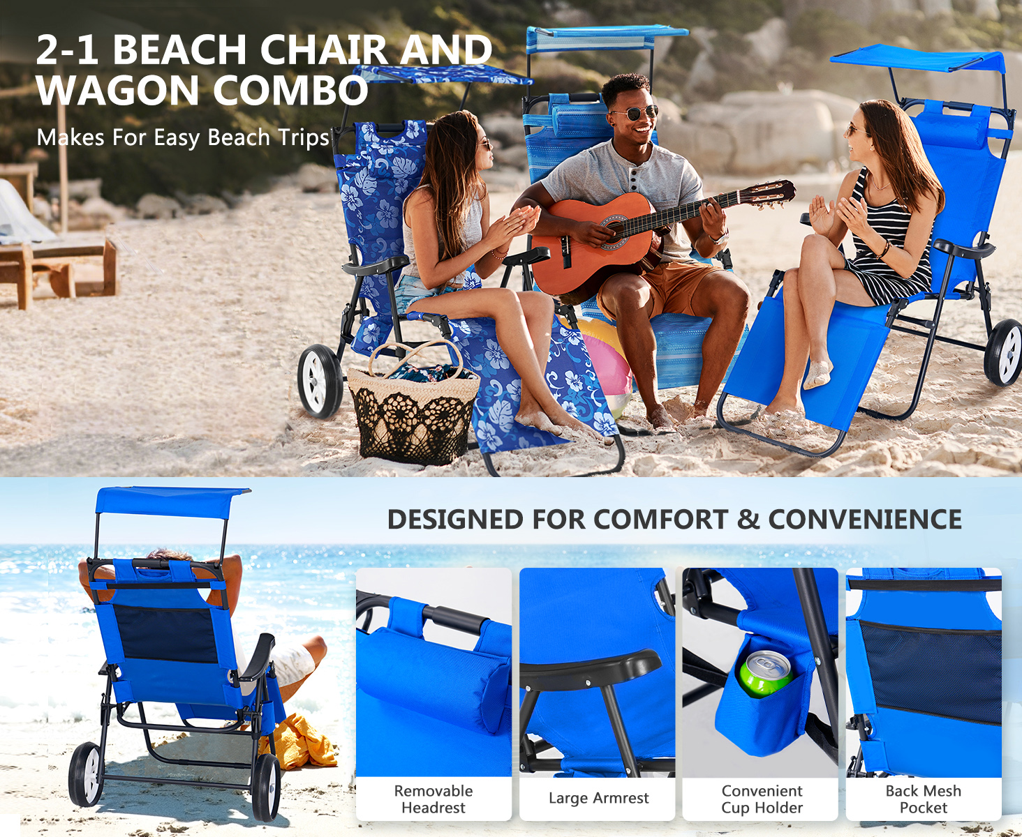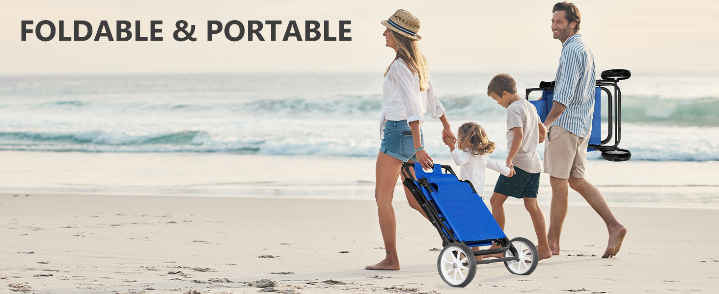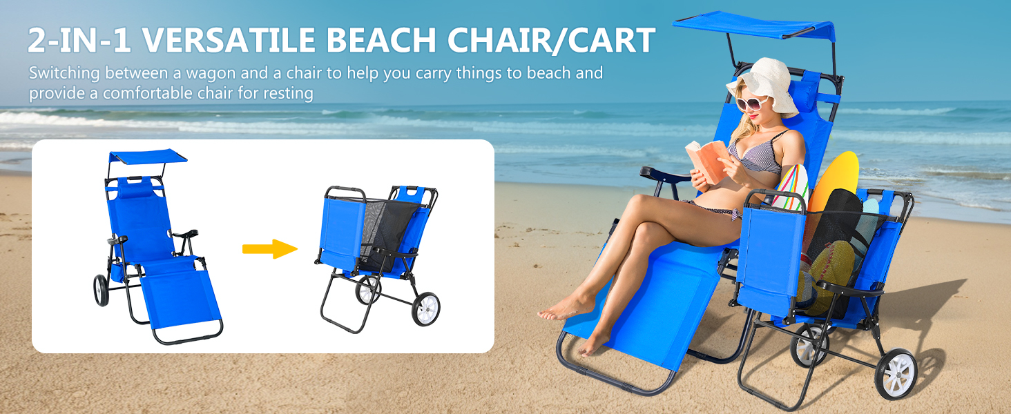 No more struggling with beach gear! This versatile beach chair transforms into a sturdy cart in seconds, making it easy to transport towels, coolers, and more. After use, it folds up compactly for convenient storage.