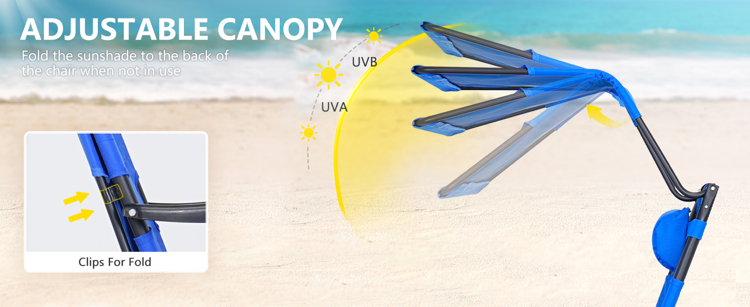 Enjoy all-day comfort with the built-in adjustable canopy that provides reliable protection from harmful UV rays—whether you're sitting up or lying down.