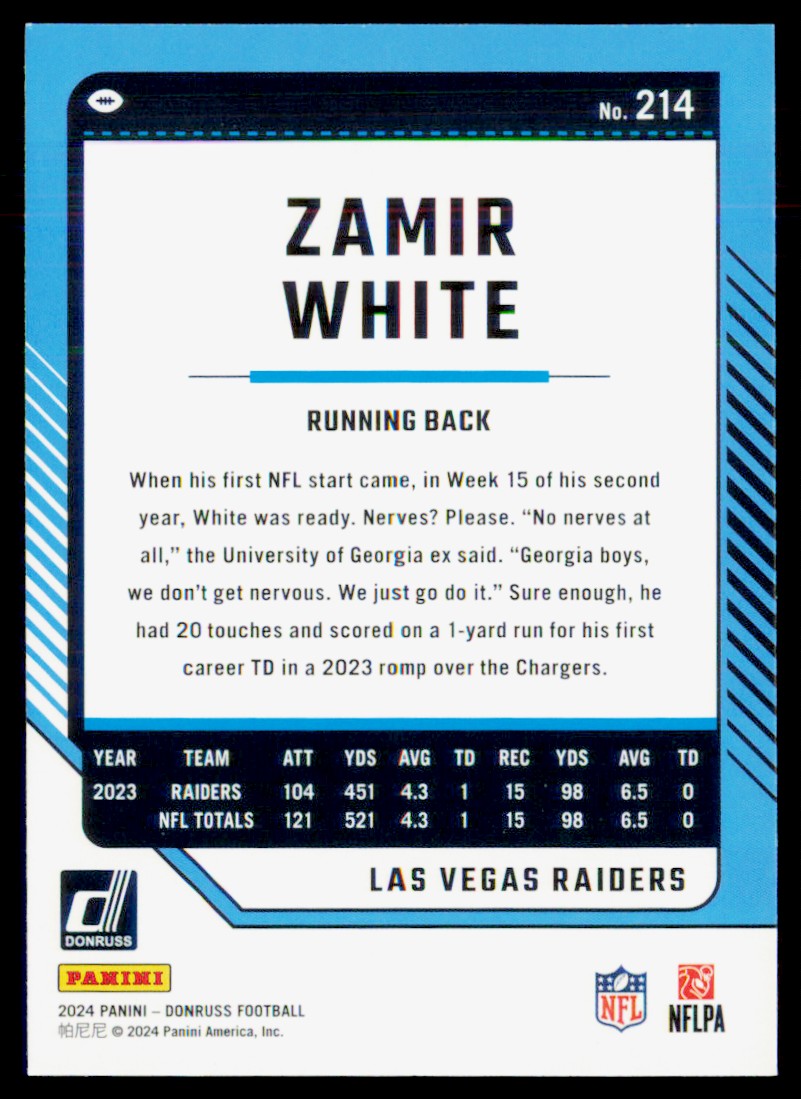 | 2024 Donruss Zamir White Las Vegas Raiders #214 | ||||||||||||||||