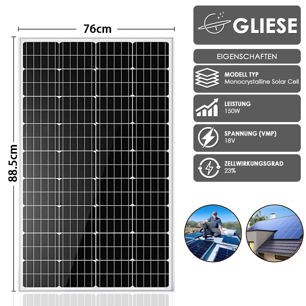 Gliese Das monokristalline 150 Watt 12 Volt Solarmodul ist die perfekte Option für jede netzunabhängige Anwendung. Ideal für Wohnmobile,