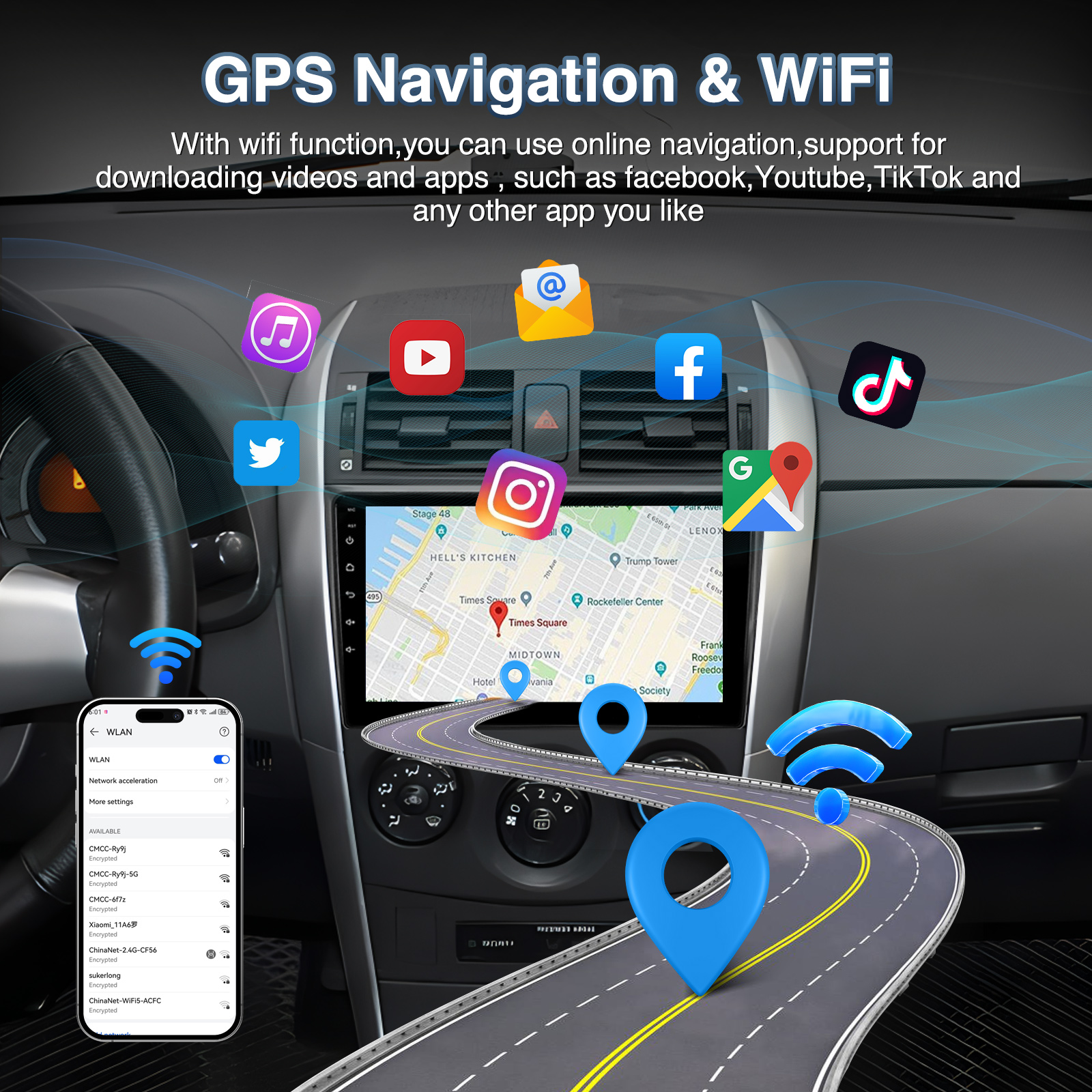 The built-in WiFi module supports Internet connection through WiFi hot spot, enabling drivers to enjoy the online world in the car.