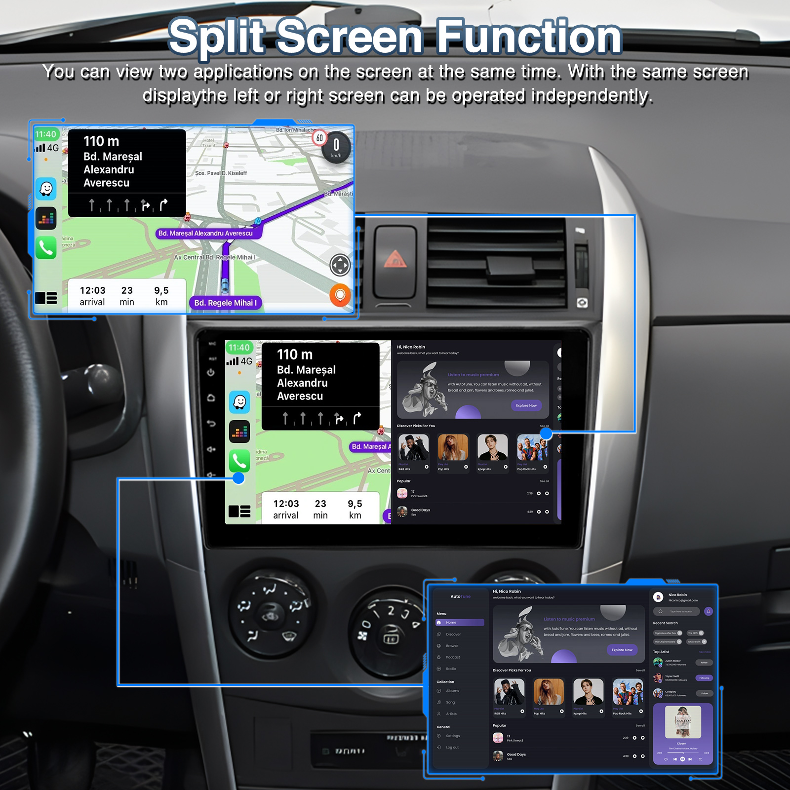 Both Apple and Android users can easily connect to their mobile phones through this navigation machine to achieve seamless switching of navigation, music, phone and other functions. A wired connection guarantees stability and speed in data transmission, while a wireless connection provides more convenience to the user.