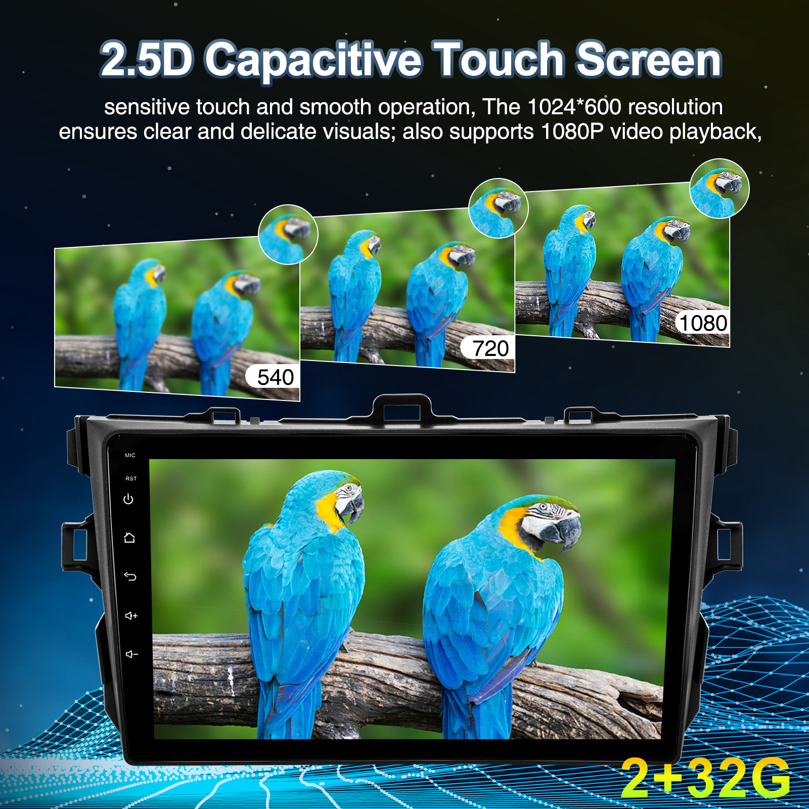 It adopts a 2.5D capacitive touch screen design, which is sensitive to the touch and smooth to operate. The 1024*600 resolution ensures the clarity and delicacy of the picture, and supports 1080P video playback function, allowing drivers to enjoy a high-definition visual experience.