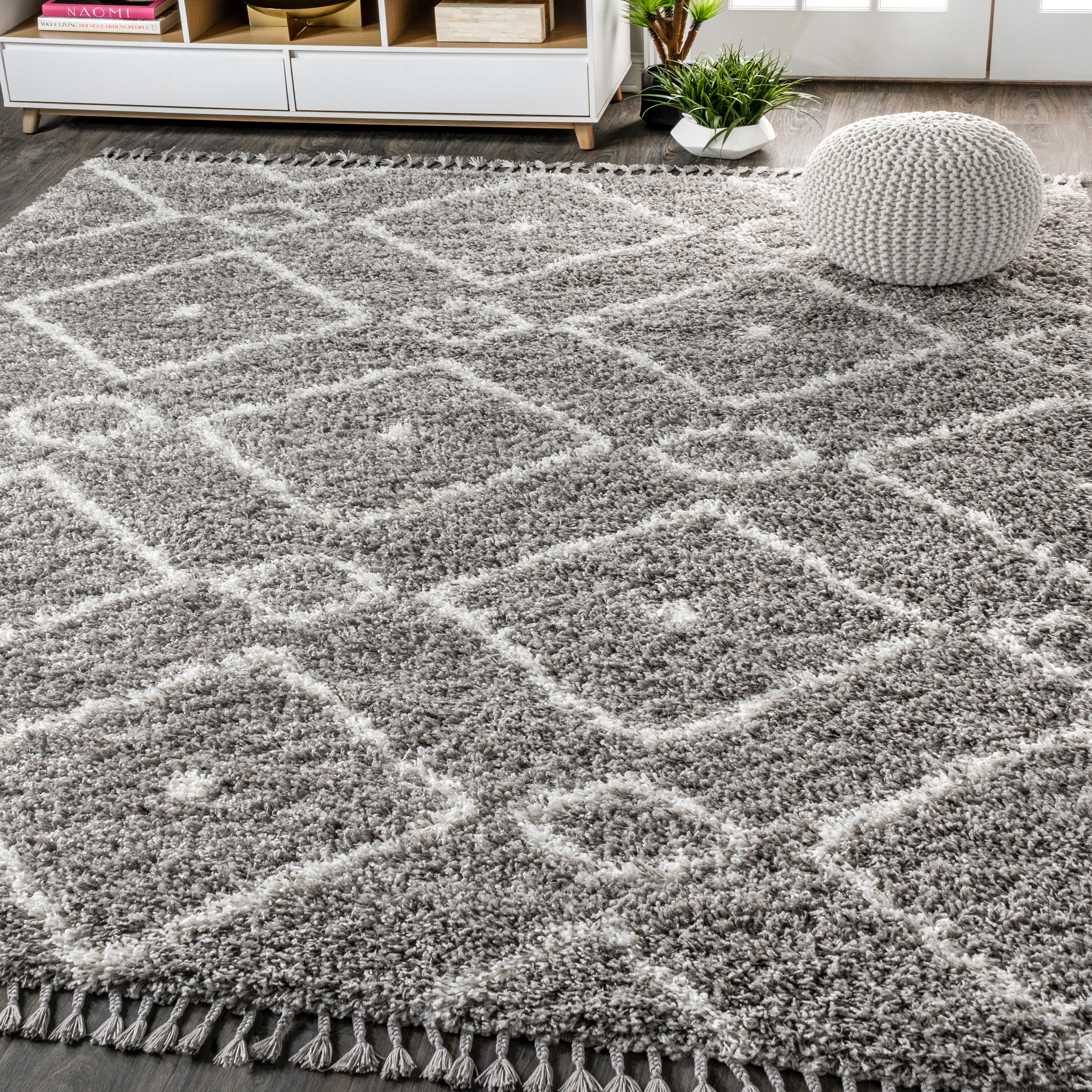 JONATHAN Y Shags Mercer Shag Plush Tassel Moroccan Diamond Indoor Area Rug
