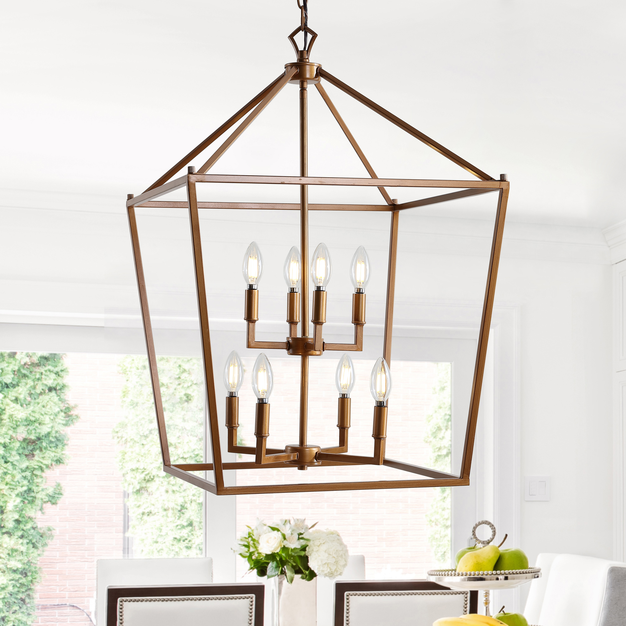 JONATHAN Y 20" Classic 8-Bulb Lantern Metal LED Pendant, Antique Gold Pagoda