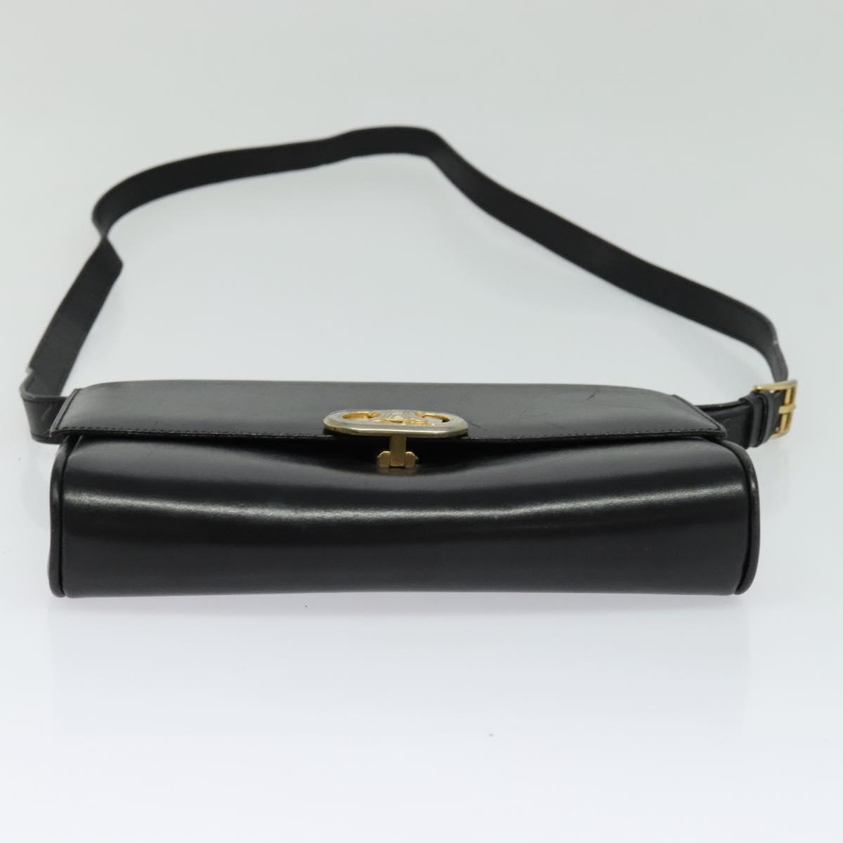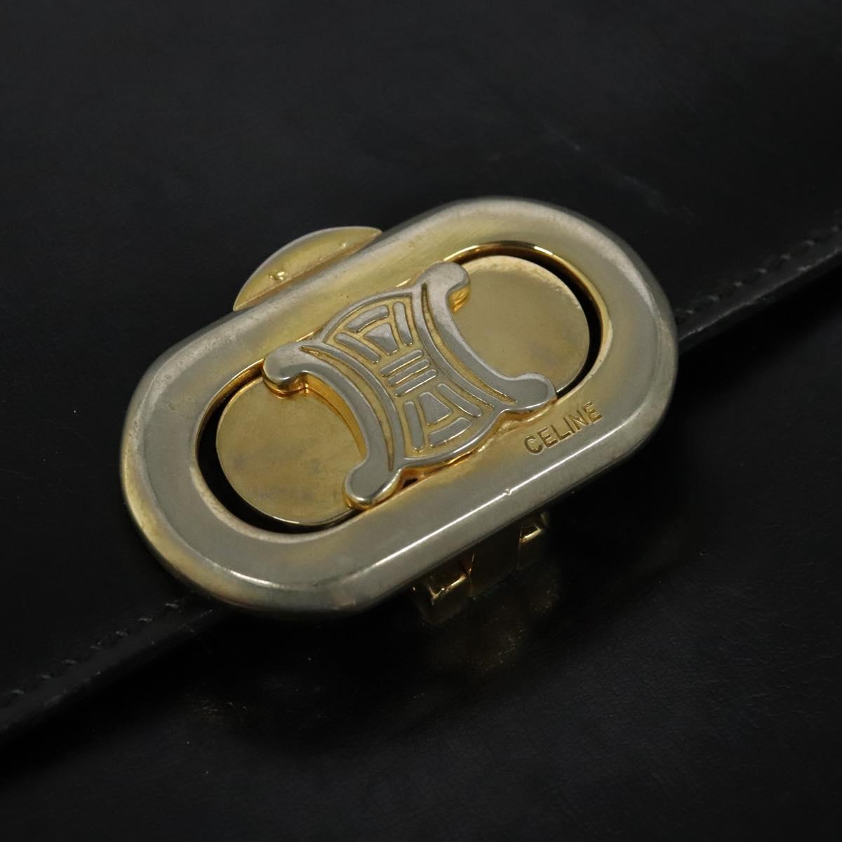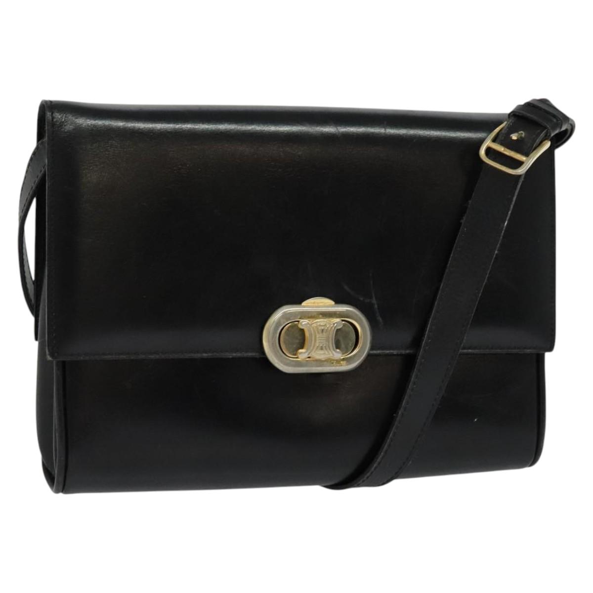 CELINE Shoulder Bag Leather Black Auth BD1219