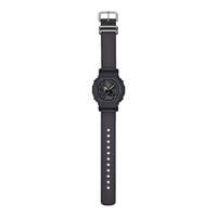 Environmentally conscious to reflect your own sensibilities—that’s the black G-SHOCK GAB2100CT-1A5. The watch is manufactured utilizing a combination of renewable resources and bio-based resin, underscoring the importance of environmental sustainability while delivering the popular performance of the GAB2100 line. Basic Information Case size (L× W× H) 48.5 × 45.4 × 11.9 mm Weight 57 g Case and bezel material Carbon / Bio-based resin Band Cloth band (Made of traceable organic TRUECOTTON) Construction Shock Resistant Carbon Core Guard structure Water resistance 200-meter water resistance Power supply and battery life Tough Solar (Solar powered) Smartphone Link/App Connectivity Features Smartphone Link feature Mobile link (Wireless linking using Bluetooth®) Apps CASIO WATCHES App connectivity feature Auto time adjustment Easy watch setting Approximately 300 world time cities Time & place Reminder Phone finder Exterior Glass Mineral Glass Other Neobrite Watch Features World time World time 38 time zones (38 cities + coordinated universal time), city code display, city name display, daylight saving on/off, auto summer time (DST) switching, Home city/World time city swapping Stopwatch 1/100-second stopwatch Measuring capacity: 00'00''00~59'59''99 (for the first 60 minutes) 1:00'00~23:59'59 (after 60 minutes) Measuring unit: 1/100 second (for the first 60 minutes) 1 second (after 60 minutes) Measuring modes: Elapsed time, lap/split time Timer Countdown timer Measuring unit: 1 second Countdown range: 60 minutes Countdown start time setting range: 1 second to 60 minutes (1-second increments and 1-minute increments) Alarm/hourly time signal 5 daily alarms Hourly time signal Light Double LED light LED light for the face (Super illuminator, selectable illumination duration (1.5 seconds or 3 seconds), afterglow) LED backlight for the digital display (Super illuminator, selectable illumination duration (1.5 seconds or 3 seconds), afterglow) Light color LED:White Calendar Full auto-calendar (to year 2099) Mute feature Button operation tone on/off Energy saving feature Power Saving (display goes blank to save power when the watch is left in the dark) Battery display/alert Battery level indicator Run time Approx. battery operating time: 7 months on rechargeable battery (operation period with normal use without exposure to light after charge) 18 months on rechargeable battery (operation period when stored in total darkness with the power save function on after full charge) Accuracy Accuracy: ±15 seconds per month (with no mobile link function) Other features Hand shift feature (Hands move out of the way to provide an unobstructed view of digital display contents.) 12/24-hour format Date/month display swapping Day display (days of the week selectable in six languages) Regular timekeeping: Analog: 2 hands (hour, minute (hand moves every 20 seconds)), 1 dial (battery level, mode) Digital: Hour, minute, second, pm, month, date, day