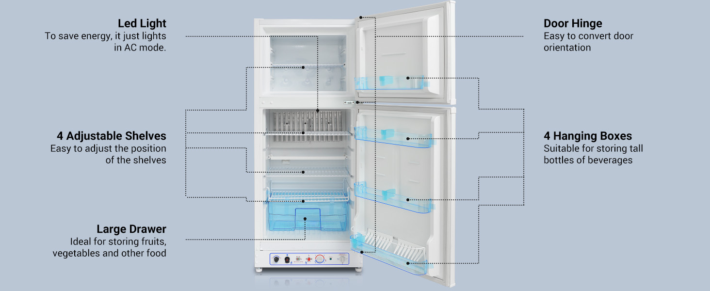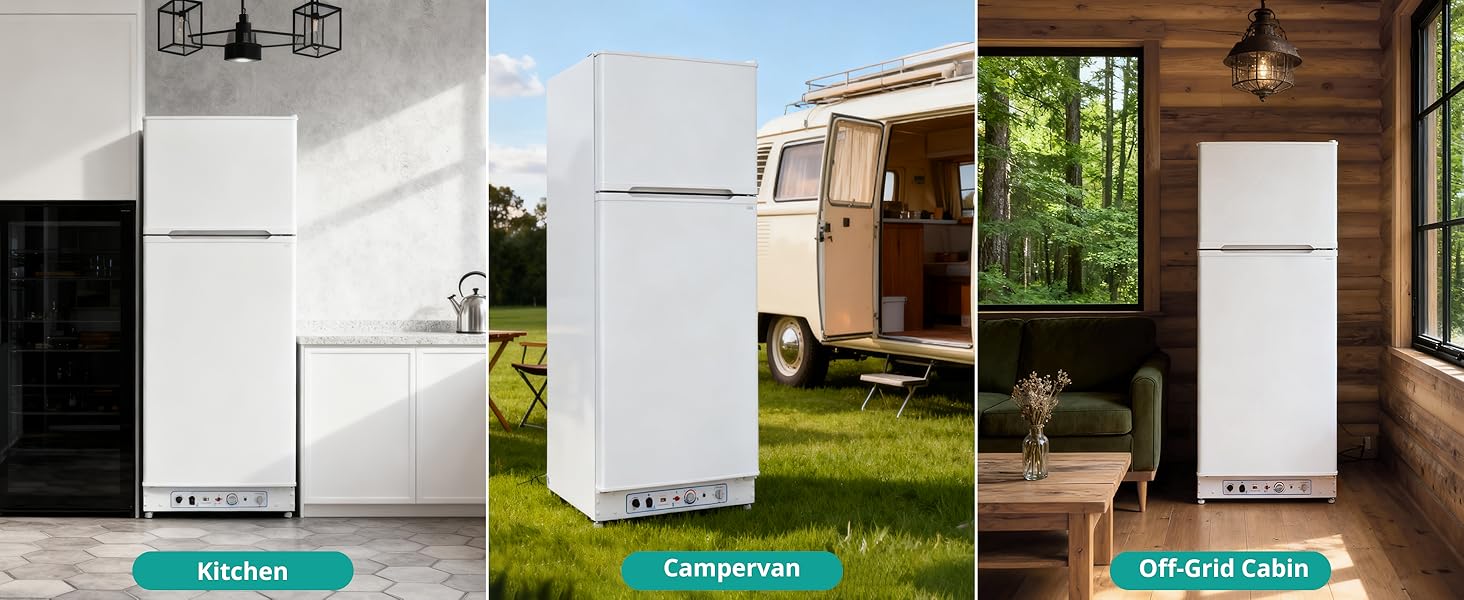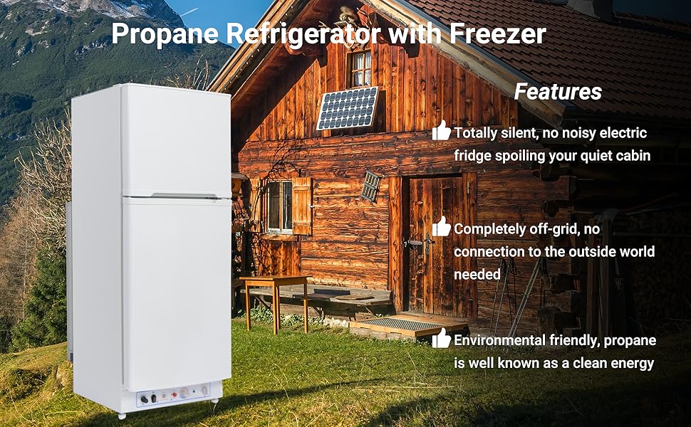 Multi-scene usage- No need to be limited by the power grid, propane fridges are ideal for RV/camper hotel, home, apartment, villa, farms, cottages, chalets, patio, off-grid/solar place.
