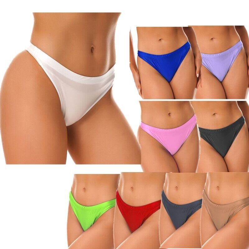 Glänzende Damen-Slips mit niedrigem Bund, einfarbig, mit elastischem Bund.