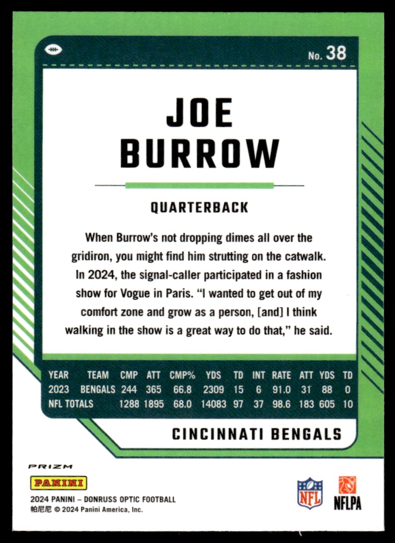 | Joe Burrow Holo Prizm #38 2024 Donruss Optic Cincinnati Bengals |