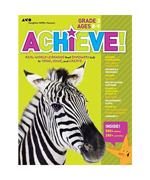 This photo-based workbook series was designed by Houghton Mifflin Harcourt, a global leader in education serving 60 million students worldwide. Achieve! offers a comprehensive curriculum with a funny bone. Vibrant photographs form the center of each activity: math, reading, science, and social studies. The book's central character is Cosmo. Cosmo appears on selected activity pages to help extend ideas to every day life. Whether it's used as a summer refresher or for weekend reinforcement, it's the perfect tool to nurture kids' natural interest in the world and how it works. In the Achieve! Grade 3 workbook, kids have hundreds of opportunities to practice Common-Core aligned math, literacy, science, and social studies. Multiply and divide, recognize and decode Latin suffixes, and explore the concept of global citizenship.