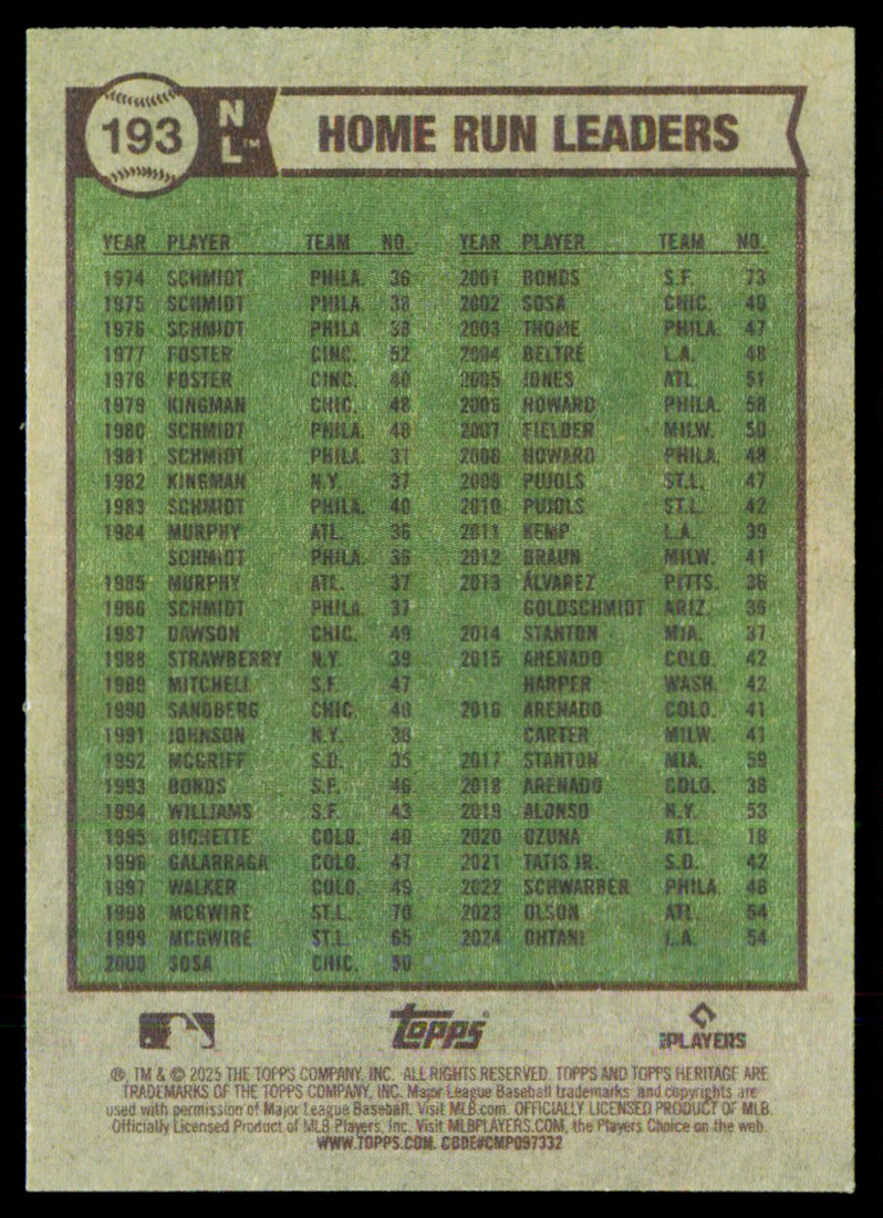 | 2025 Topps Heritage Kyle Schwarber / Marcell Ozuna / Shohei Ohtani Philadelphia | ||||||||||||||||