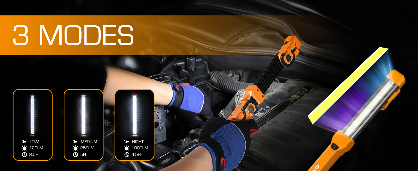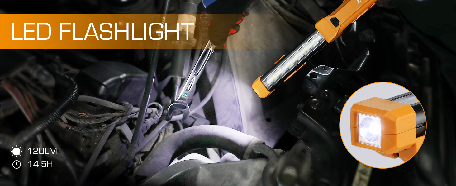 With an aluminum alloy housing and multiple heat sinks, this work light ensures efficient heat dissipation and durability. The aluminum construction resists impact and corrosion, keeping the light cool and reliable for mechanics, garage tasks, and various household projects.