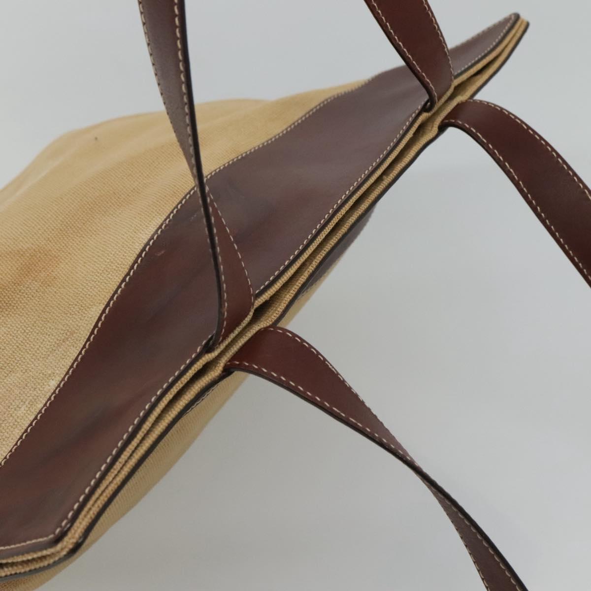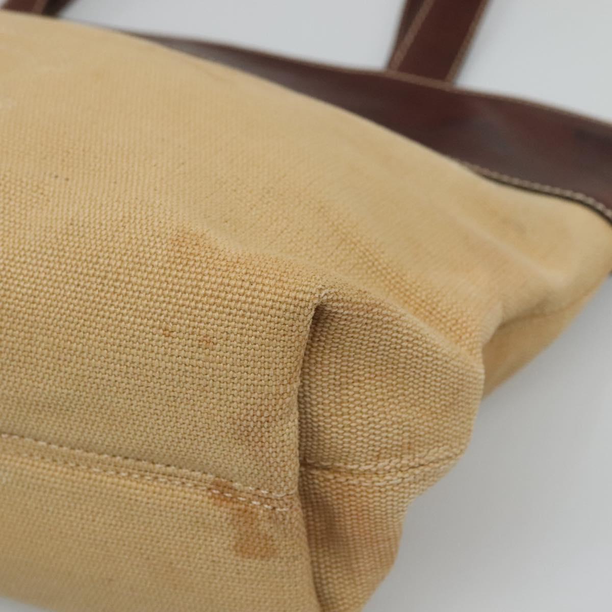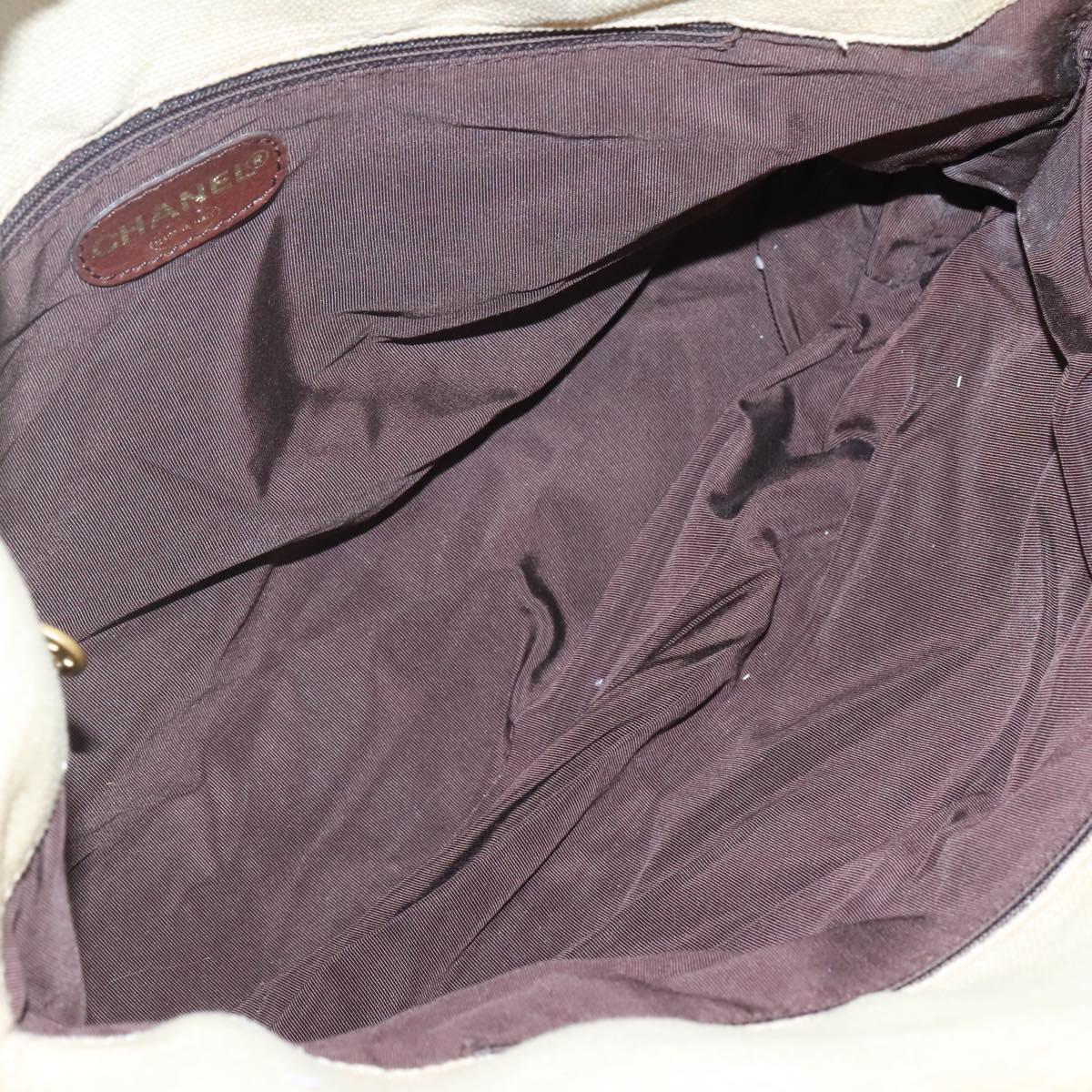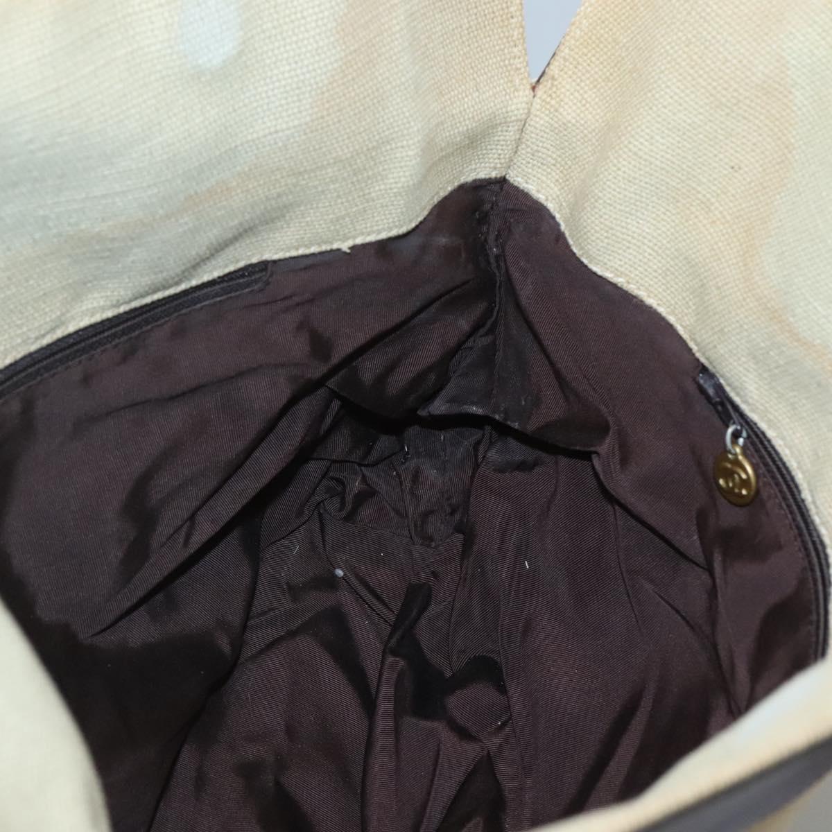 CHANEL COCO Mark Tote Bag Leather Canvas Beige CC Auth 117522