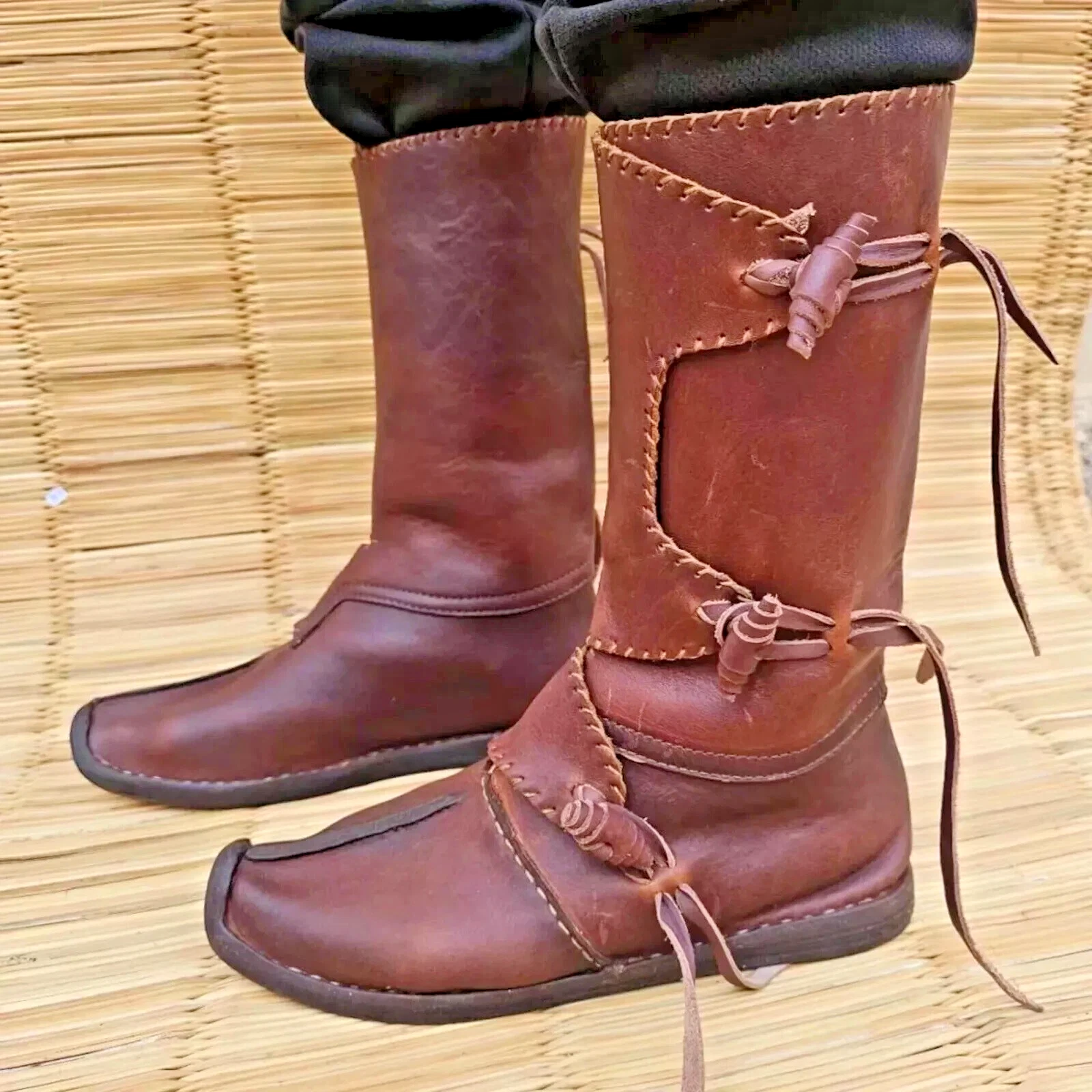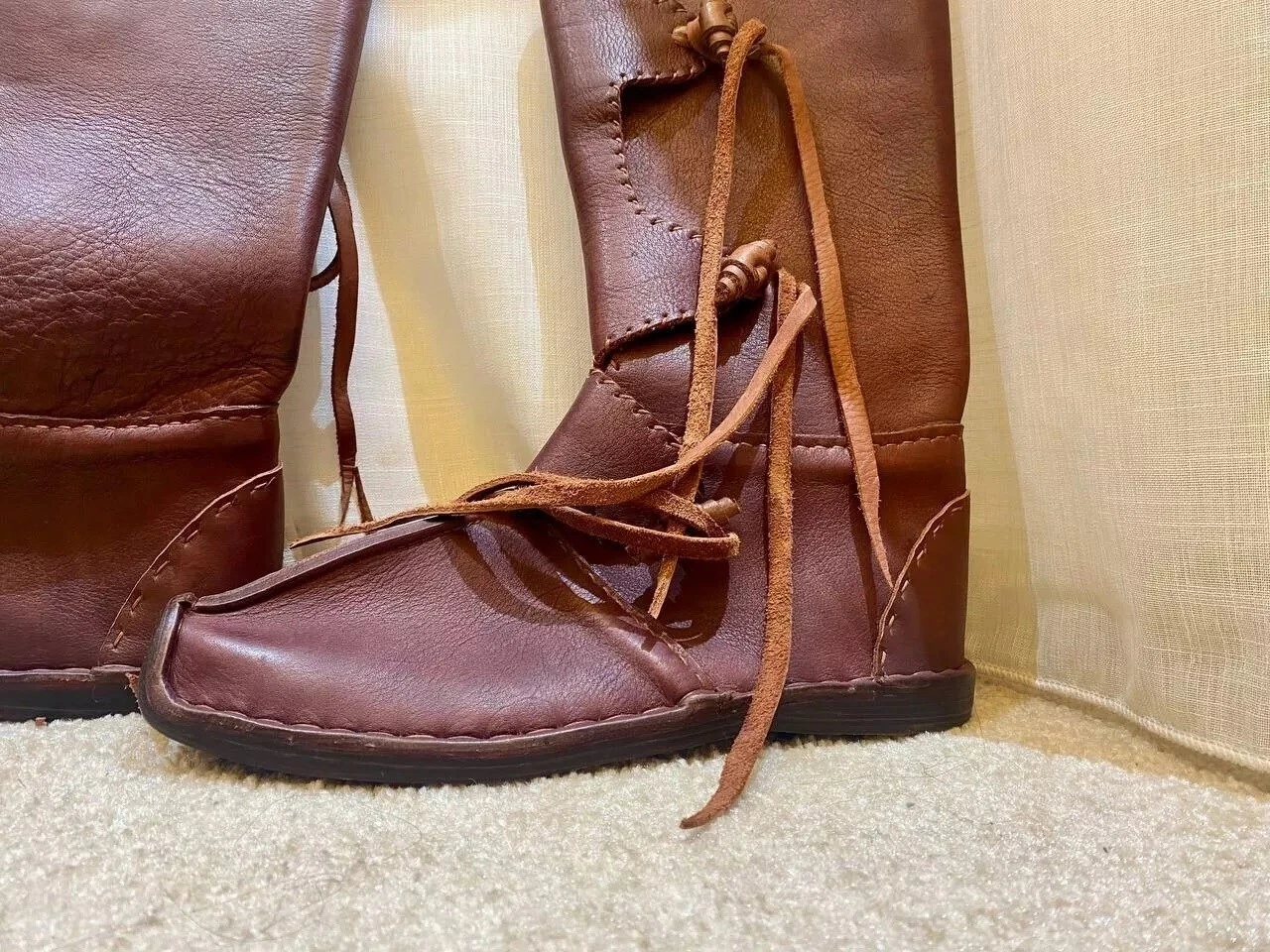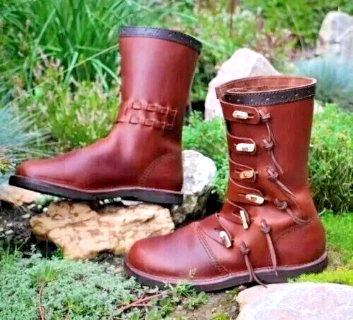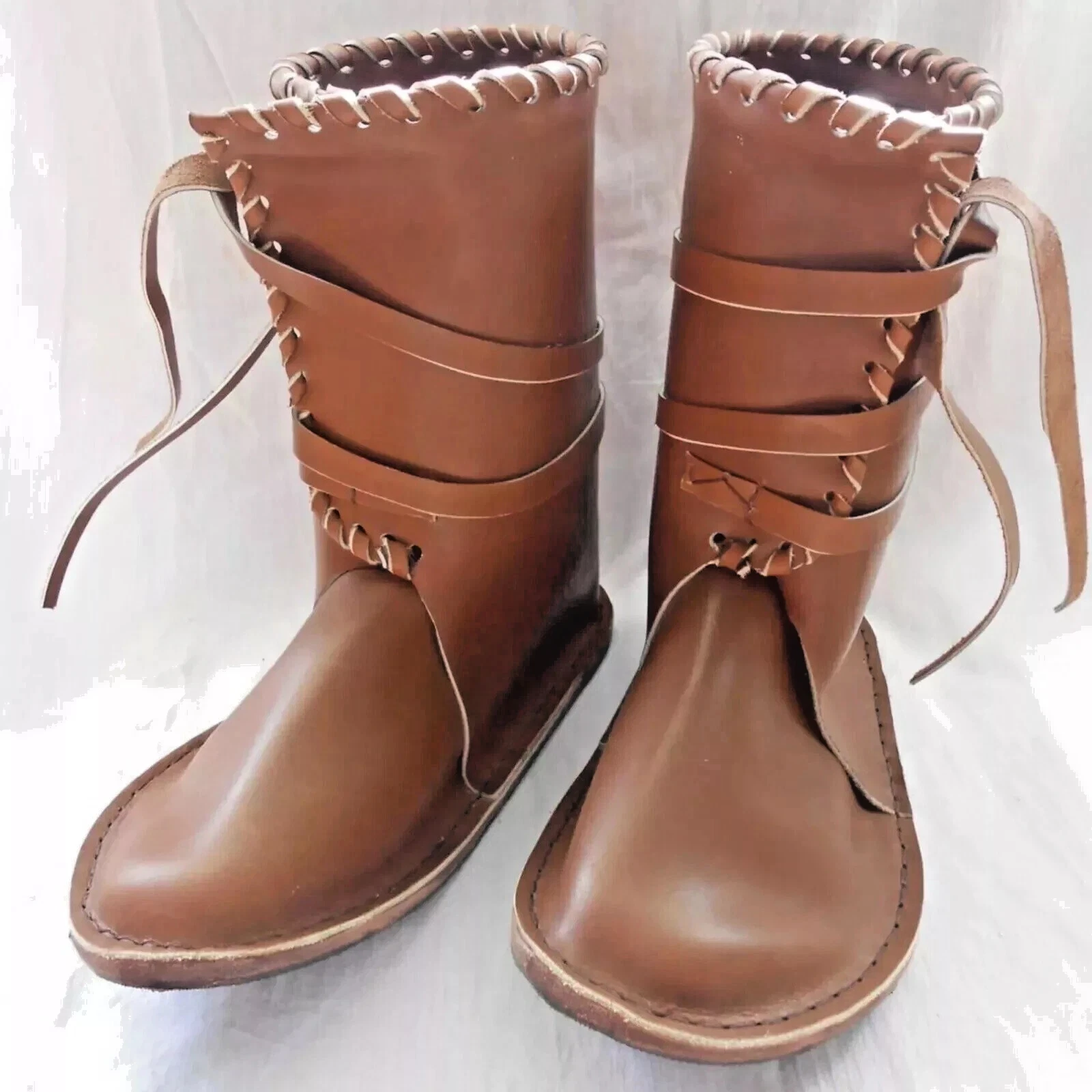 Medieval Viking Leather Boots SCA LARP Renaissance Long Brown | 🛒 SHOP NOW |