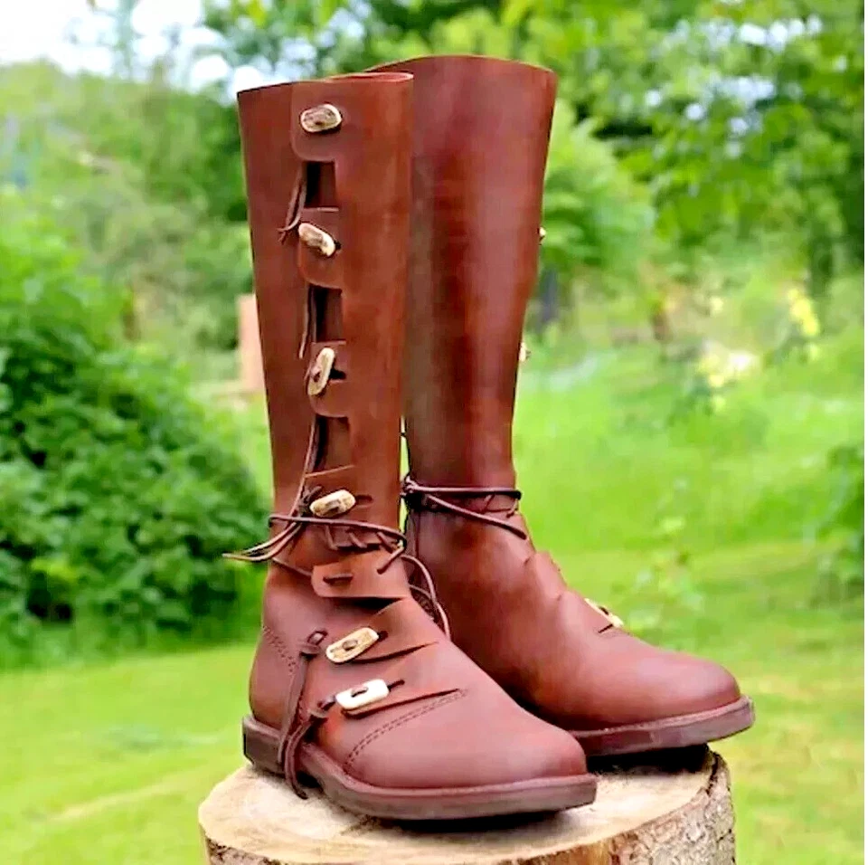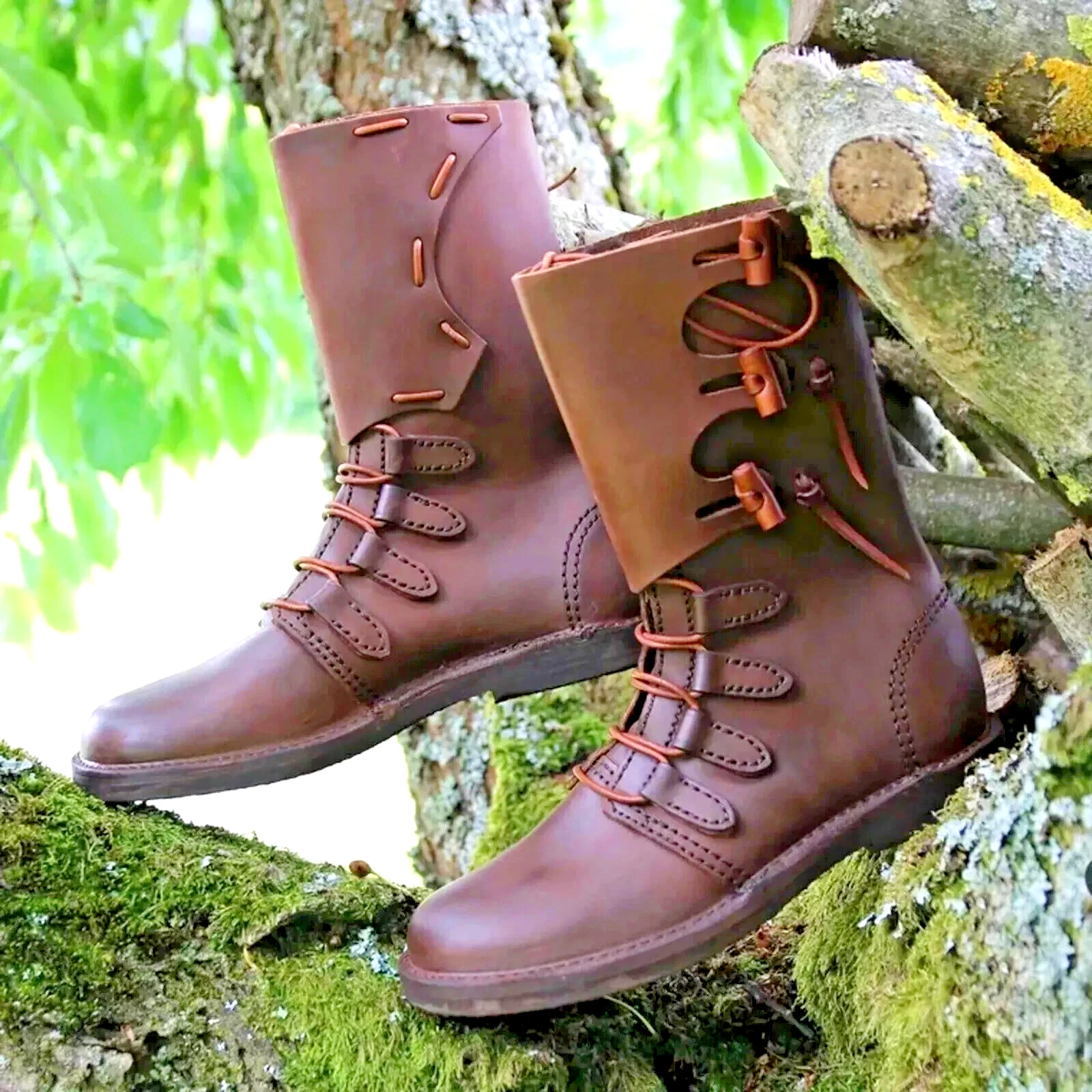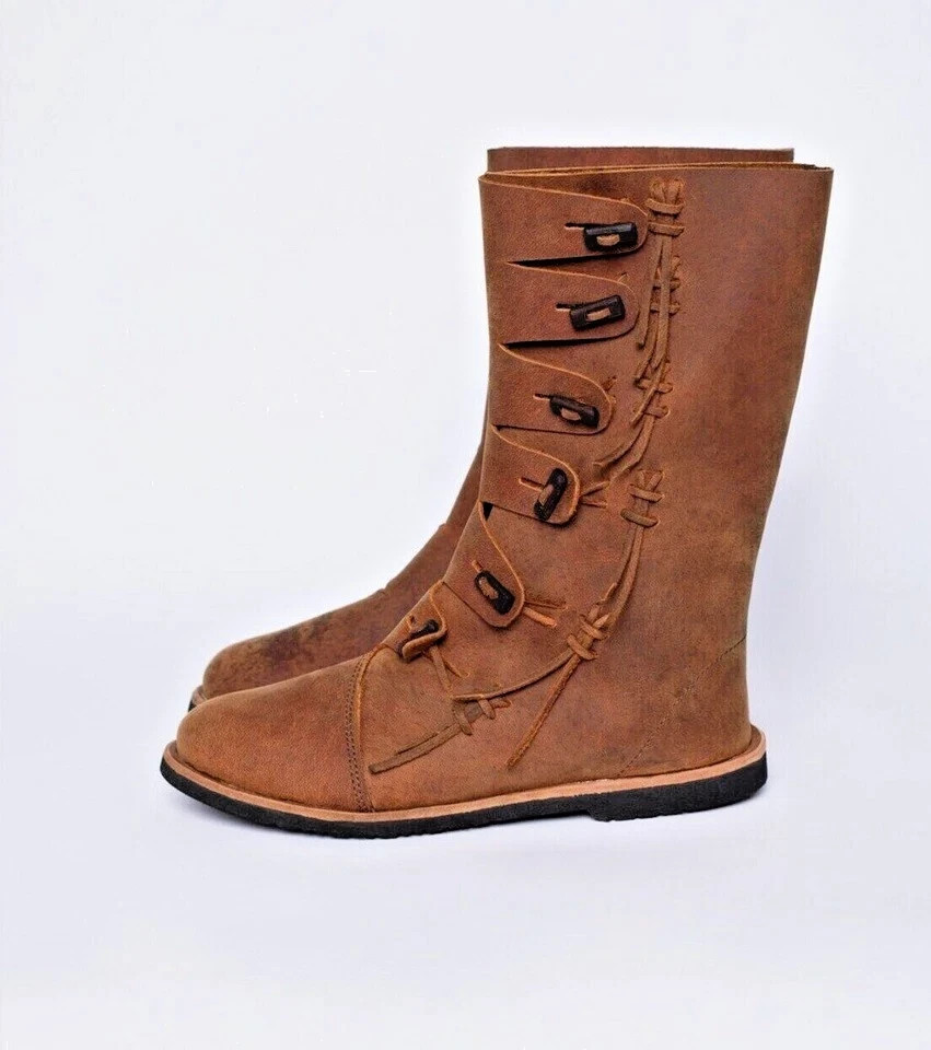 Medieval Viking Leather Boots SCA LARP Renaissance Long Brown | 🛒 SHOP NOW |
