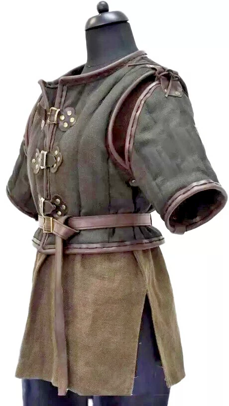 Medieval Thick Padded Cotton Gambeson Jacket w/ Brown Leather Trim for | 🛒 SHOP NOW |