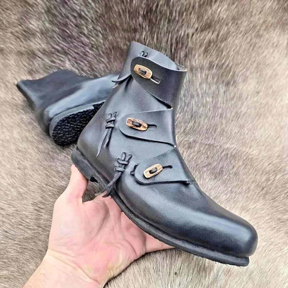 Viking Style Ankle Boots Men’s Medieval Rustic Leather Handmade LARP | 🛒 SHOP NOW |