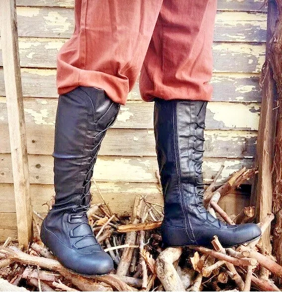 Black Viking Highlander Renaissance Peasant Costume Boots Medieval | 🛒 SHOP NOW |